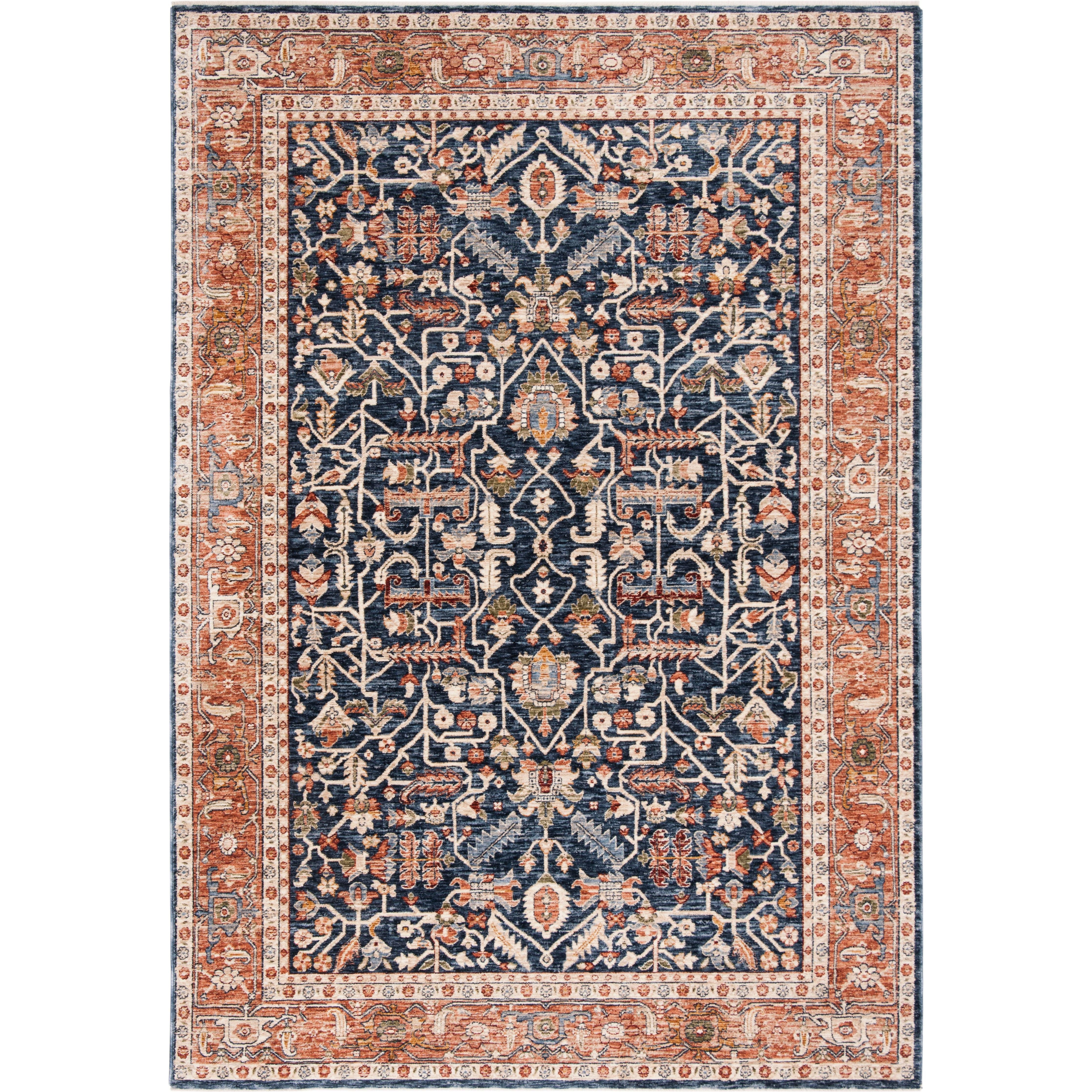 exquisite Heirloom 700 HRL703N Navy Beige rug, a captivating addition to any living space. Crafted with meticulous attention to detail, these heirloom rugs draw inspiration from the timeless Oushak and Peshawar carpet motifs. The power-loomed construction features a specialized polypropylene yarn that gives each rug a beautifully faded vintage appearance, adding a touch of elegance to your home decor.