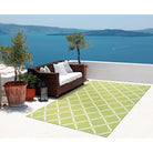 Home Garden RS091 Light Green rug, perfect for creating a serene ambiance in any space. This versatile indoor/outdoor rug from the Home & Garden Collection features charming floral, botanical, and scrolling patterns in vibrant colors that will uplift your patio, porch, deck, yard, or interior. Crafted from durable polyester fibers, this rug is designed to withstand various elements effortlessly.