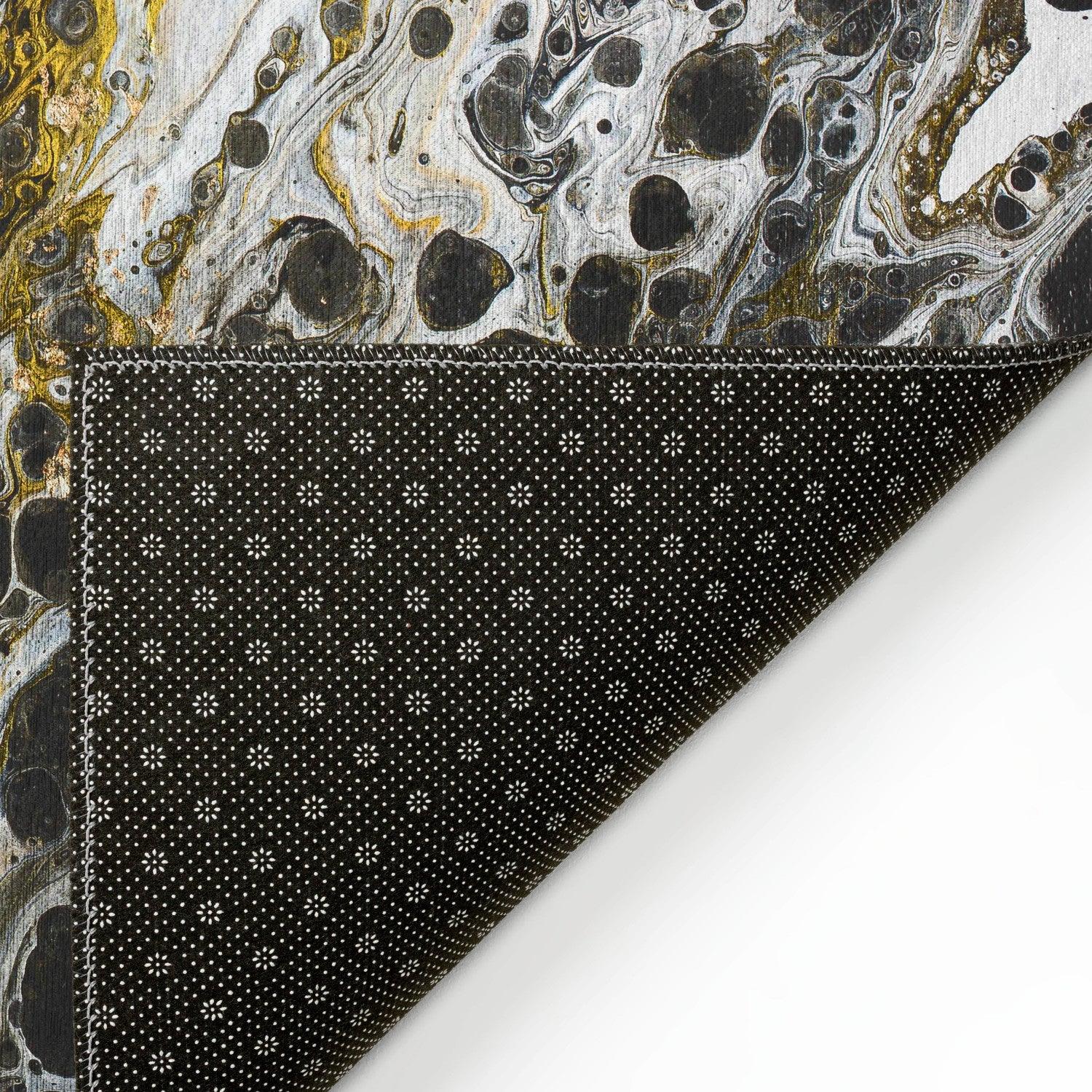 Karina AKC43 Midnight area rug, a luxurious addition to your home decor. Made in the USA, this ultra-soft flat Chenille rug features vibrant colors that pop with Prismatic color processing. Crafted from 100% polyester pile with a premium non-skid backing, this rug is both stylish and functional.