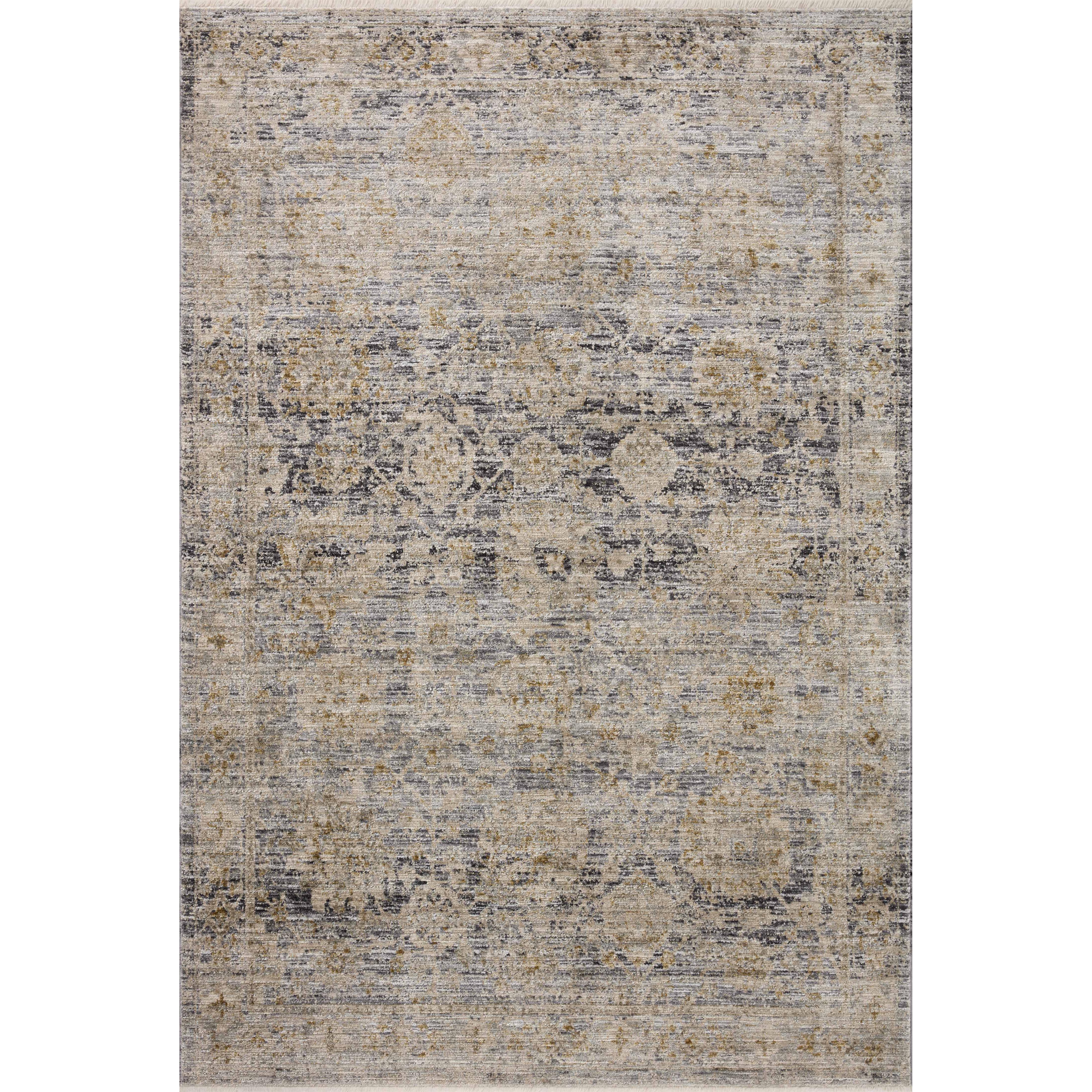 striking Katherine Kes 02 Charcoal Gold area rug from the Katherine Collection. This rug boasts a captivating blend of dynamic colors and textured pile, making it a versatile choice for any space. Crafted using a specialized power-loom technique in Turkey, Katherine features an organic dimension with a subtle ribbed texture that exudes sophistication. The rug's neutral palette adds a touch of elegance to your decor, seamlessly blending machine-made precision with the charm of handmade craftsmanship.