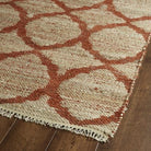 Kenwood KEN06 Rust rug from our distinctive collection. Crafted with care in India, this rug is a true masterpiece of natural jute fiber combined with recycled Sari viscose. The result is a rug that not only looks stunning but also feels great under your feet. With two color options available due to its unique positive/negative color weaving technique, you'll find yourself torn between choosing which side to display. This reversible flatweave rug offers versatility and durability, making it a perfect addition to any space in your home. Upgrade your decor with the Kenwood KEN06 Rust rug today!