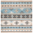 Kilim KLM754M by SAFAVIEH, a stunning bohemian flat weave area rug that showcases traditional craftsmanship from nomadic cultures spanning the Middle East to Central Asia. Handmade with care, Kilim rugs feature tribal-inspired motifs and vibrant colors that effortlessly enhance any living space. With a sleek thickness of approximately 0.25 inches, this rug adds a touch of cultural charm to your home decor.
