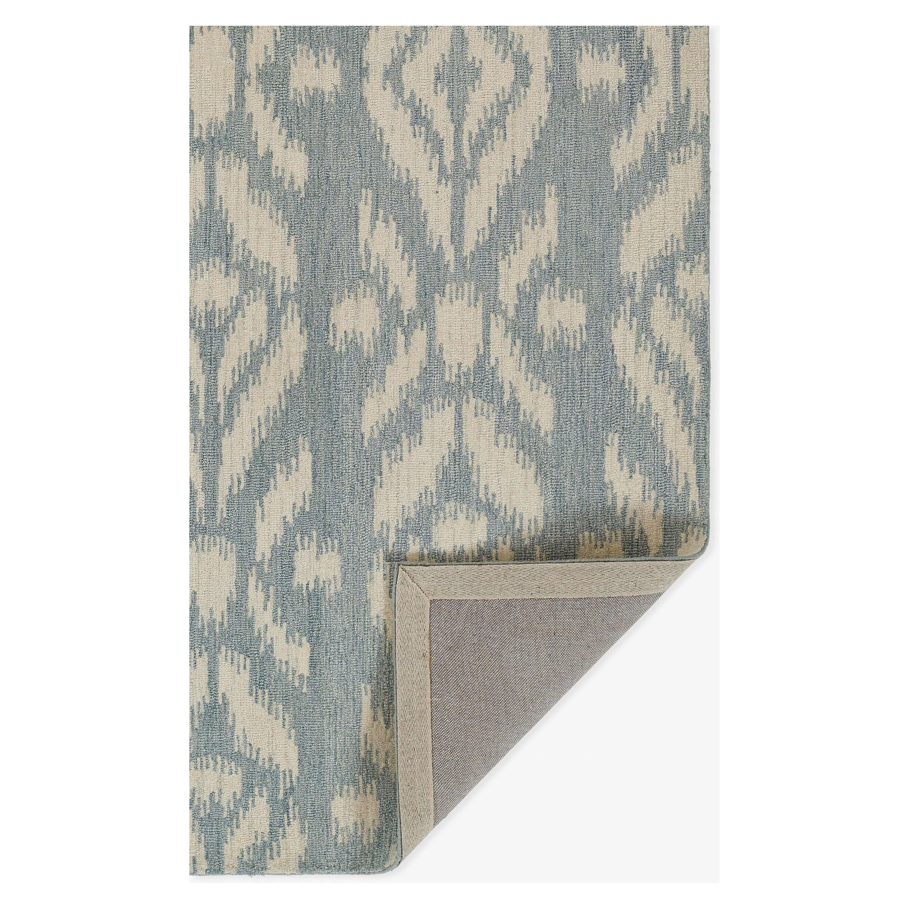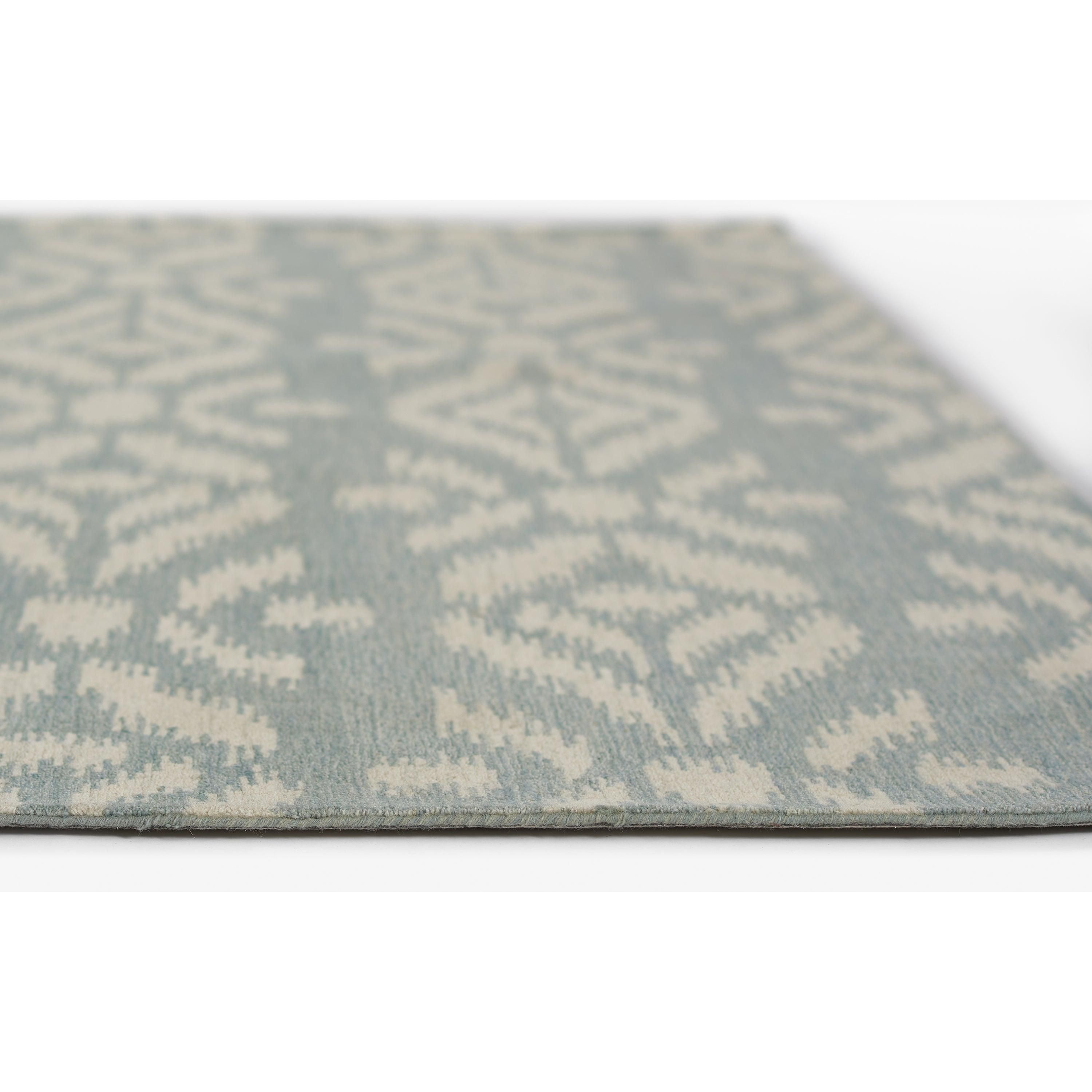 Leiden Lei 6 Light Blue from the Leiden Collection. This rug combines classic design with a modern edge inspired by the calm and cool vibes of West Coast culture. The intricate patterns draw from traditional styles like Ikat and Japanese Shibori, reimagined in stunning shades of blue reminiscent of the Pacific Ocean.