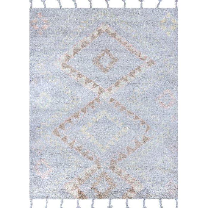 Lima Amazon Morning Mist rug from our Lima Collection, inspired by the captivating cultural influences of Peru. This collection showcases hand-knotted designs using a Persian knot technique to replicate the vintage aesthetic found throughout the country. Crafted from a blend of wool, these rugs feature a unique drop-stitch technique creating a textured, lined look. Tassels add a charming touch reminiscent of traditional antique rugs. The wool material is flame retardant, stain-resistant, and durable, ensuring longevity and easy maintenance.