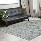 Livigno 1243 Green area rug, a stunning addition to any living space. With its elegant transitional pattern, this rug offers timeless appeal that effortlessly complements a variety of interior design styles. The densely woven pile ensures outstanding pattern clarity and design definition, while the geometric design adds a modern touch. Available in an array of colors including cream, beige, grey, green, and blue, these rugs blend seamlessly with any existing color scheme.