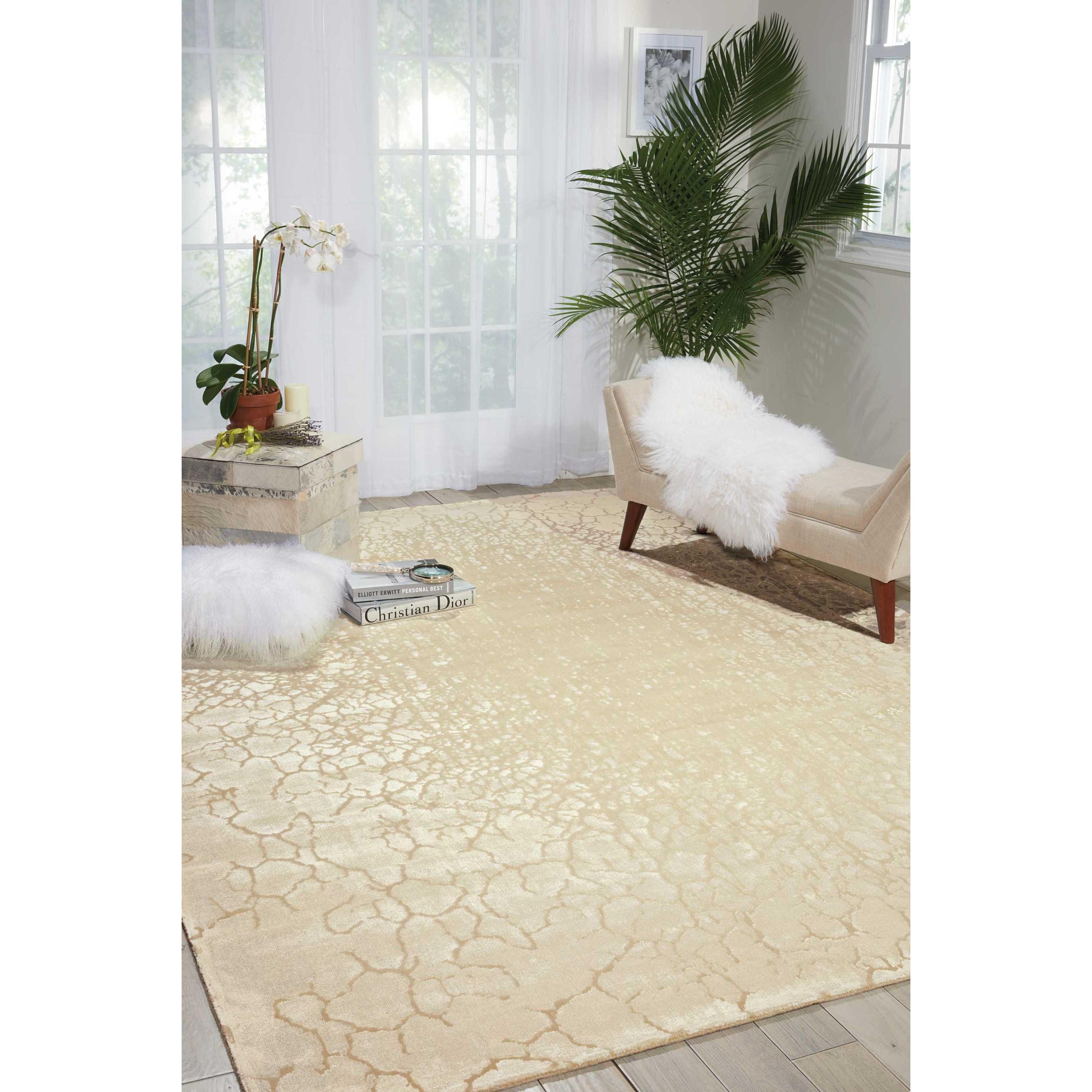 Luminance LUM12 Cream, a rug collection that seamlessly blends ancient geometrics with a contemporary color palette. Crafted from a unique Luxcelle and wool blend, these rugs offer a luxurious texture and glossy finish that adds warmth and sophistication to any decor style.