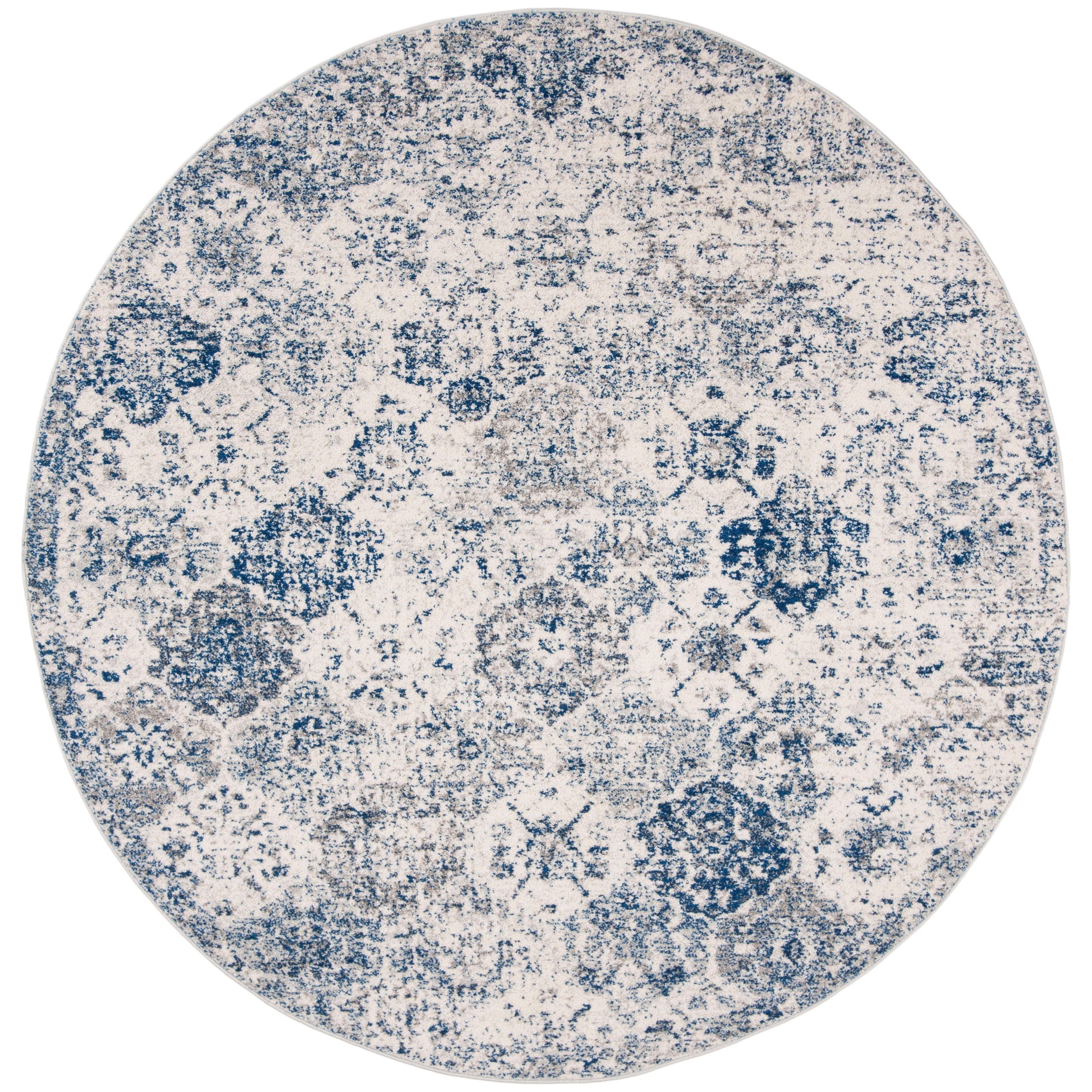 Elevate the style of any room with the Madison MAD611C White Royal Blue rug from SAFAVIEH’s Madison Collection. This stunning piece combines vintage charm with a modern twist, featuring floral medallions in a trellis pattern on an erased-weave distressed patina. Crafted from easy-care synthetic silky fibers, this boho-chic rug is both durable and stylish, fitting seamlessly under furniture or in entryways. With a thickness of approximately 0.375 inches, it adds a plush feel to your space.