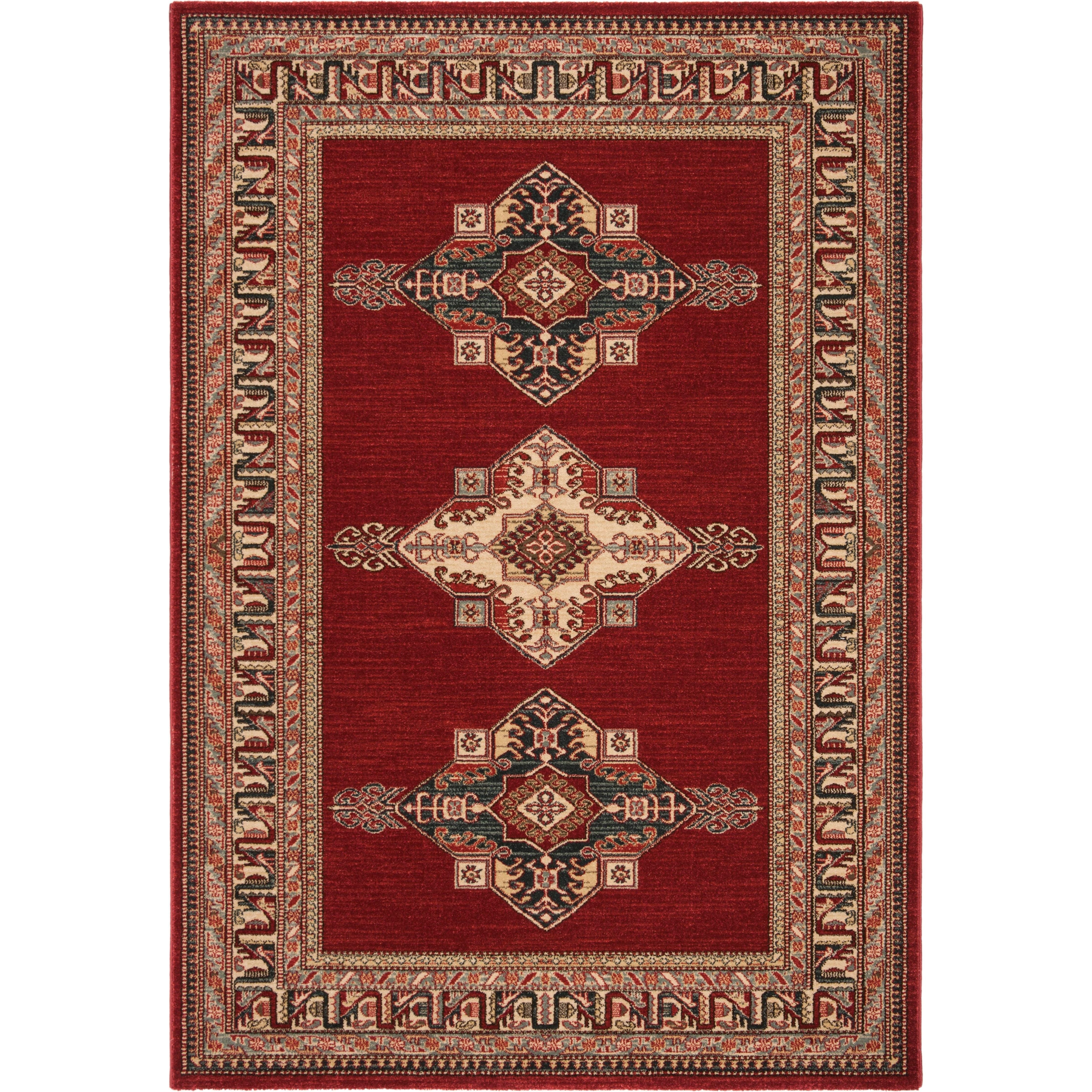 exquisite Mahal MAH628Q Red Creme rug, featuring timeless Persian designs that have adorned sophisticated spaces for generations. This collection pays homage to classic motifs in vibrant hues, adding a touch of elegance to any room. Crafted from durable polypropylene yarn through power-loom technology, these intricately designed rugs are not only beautiful but also practical for high-traffic areas.