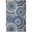 Introducing our Marina Circles Blue area rug, a perfect blend of sophistication and playfulness for your living space. The flatweave rug showcases decorative overlapping circles in rich navy, green, blue, and ivory hues. The abstract design is brought to life with a mosaic-like effect created by dots, lines, and squares that come together to form larger circular shapes. Vibrant and bold in color, this geometric masterpiece effortlessly adds style and character to any room in your home.