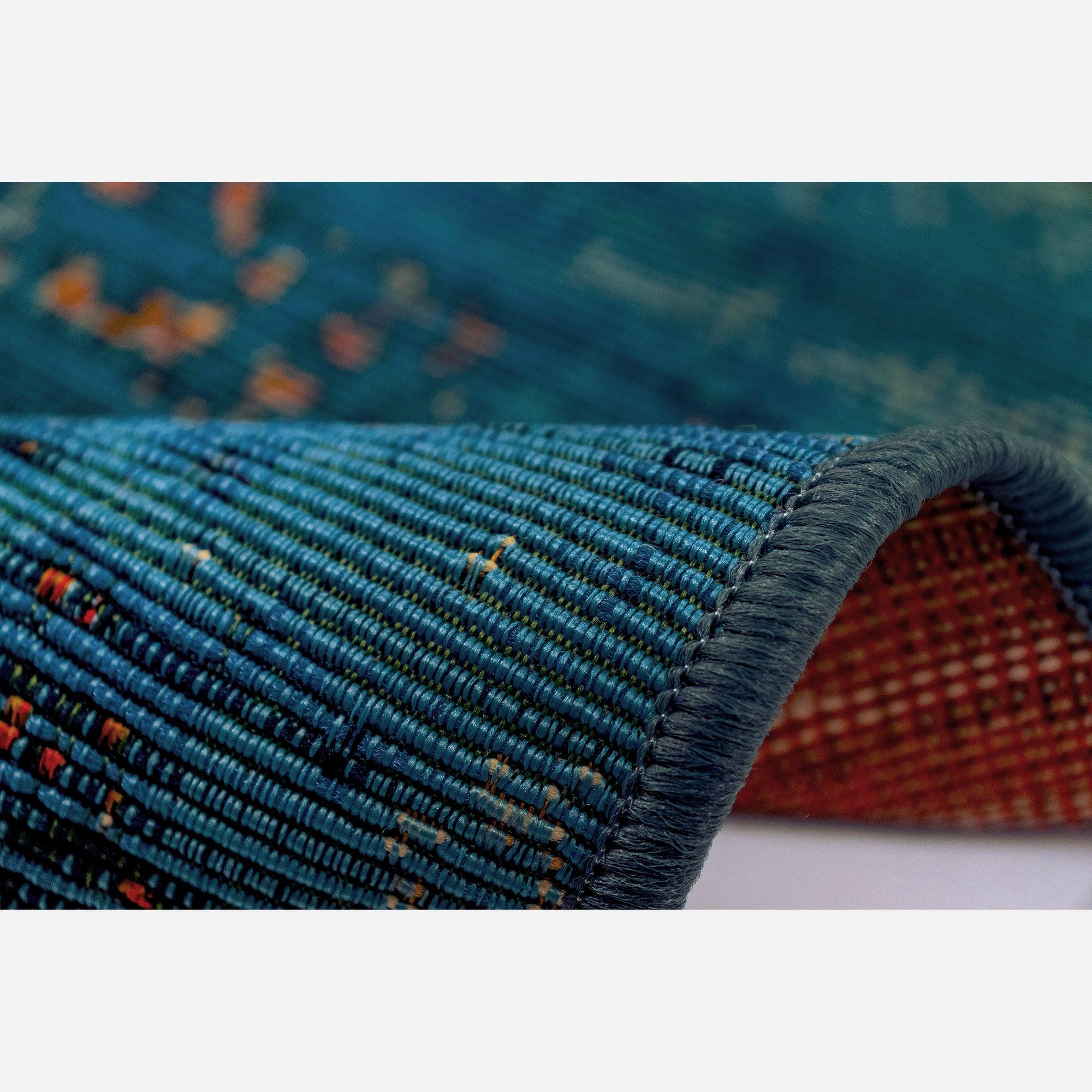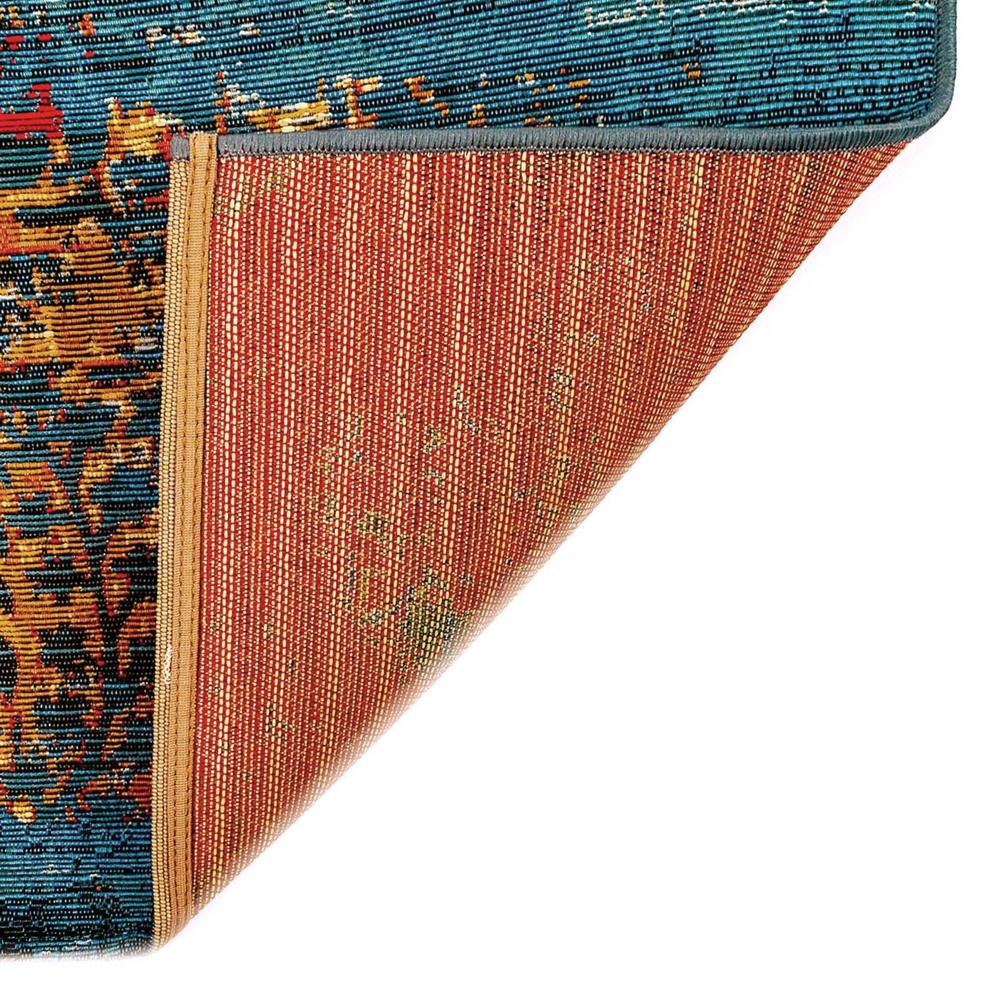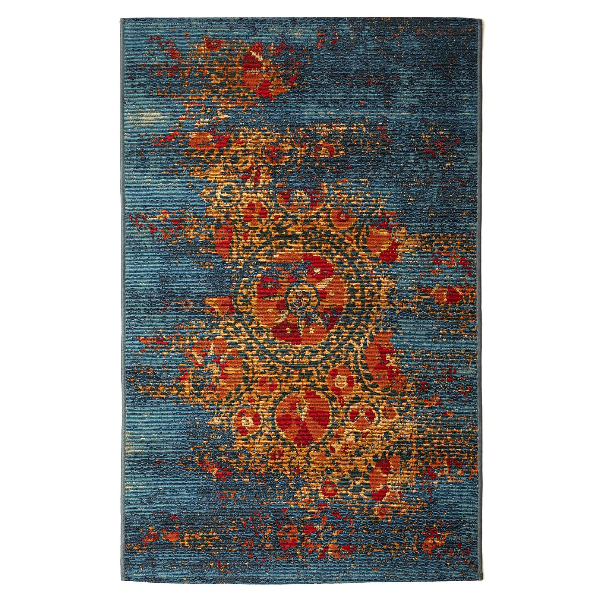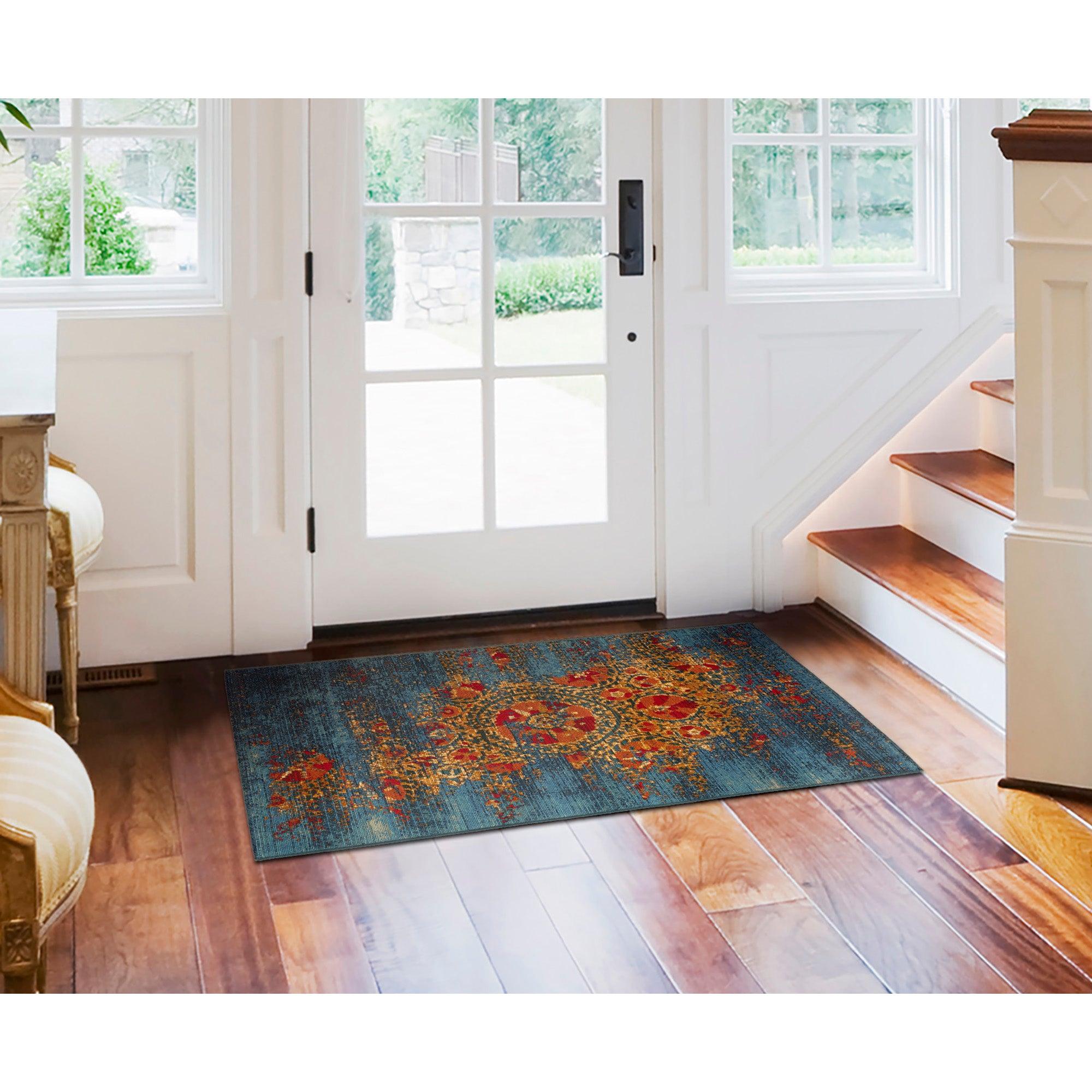 Marina Suzanie Blue area rug, a modern bohemian twist on a timeless, traditional design. Crafted in bold, vibrant colors with heavy distressing for a vintage look, this rug features rich shades of blue, orange, and yellow that set it apart as a unique statement piece. Made in Egypt from 100% polypropylene, the Marina Collection is Power Loomed to create intricate designs with a wide color spectrum and high-quality finish.