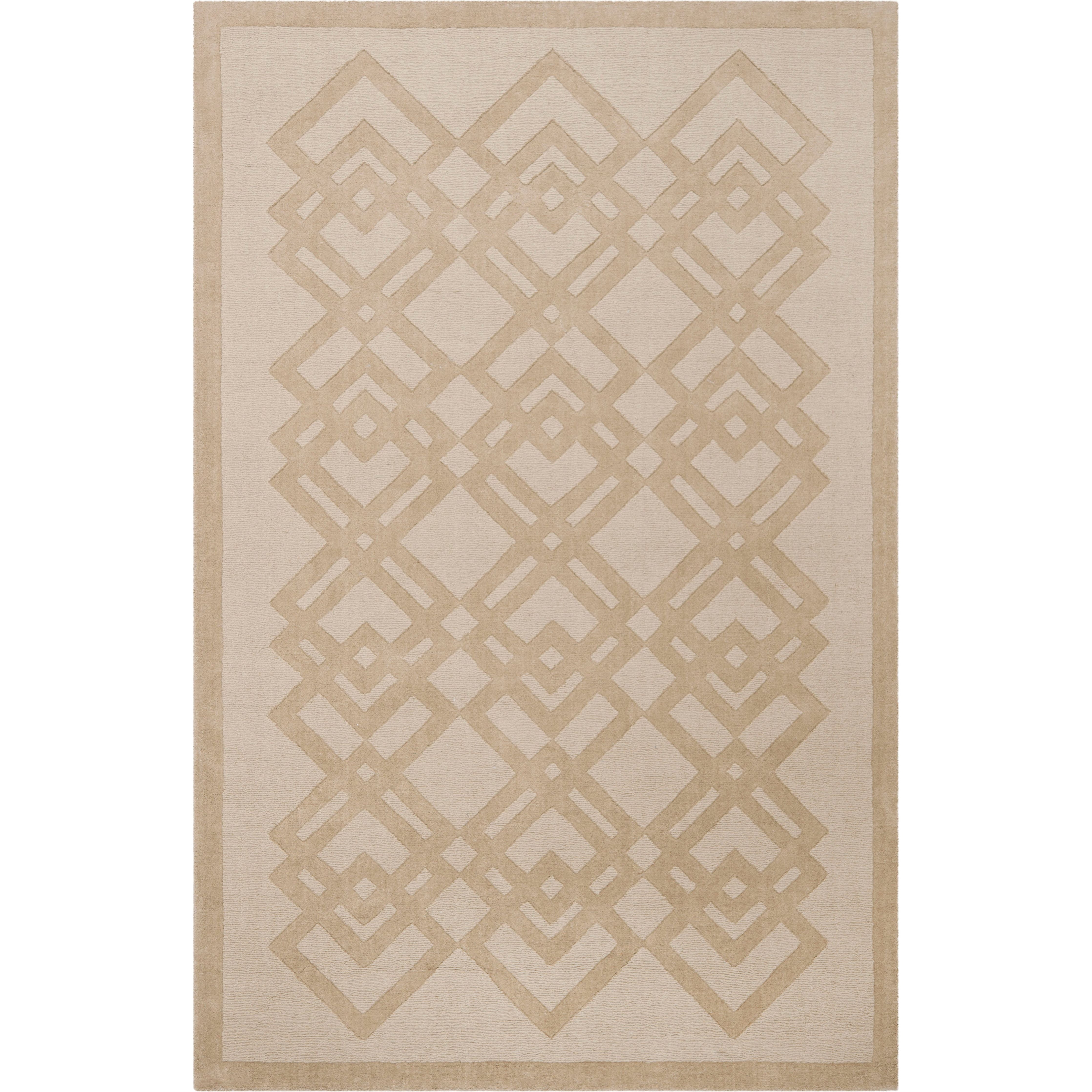 Martha Stewart MSJ5421A, a modern twist on the traditional garden lattice pattern. The Viewpoint rug showcases a unique design with two layers of interlocking diamonds, creating a fresh and contemporary look. Crafted with care using acrylic and wool yarns, this textured rug is hand-loomed and hand-carved for added depth and luxury.