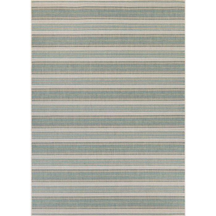 Monaco Marbella Blue Mist Ivory rug, a versatile addition to your home decor. Crafted with 100% Fiber Enhanced Courtron™ Polypropylene, this rug boasts a structured flatwoven construction that is perfect for both indoor and outdoor settings. The relaxed casual living and geometric designs bring a modern touch to any space.