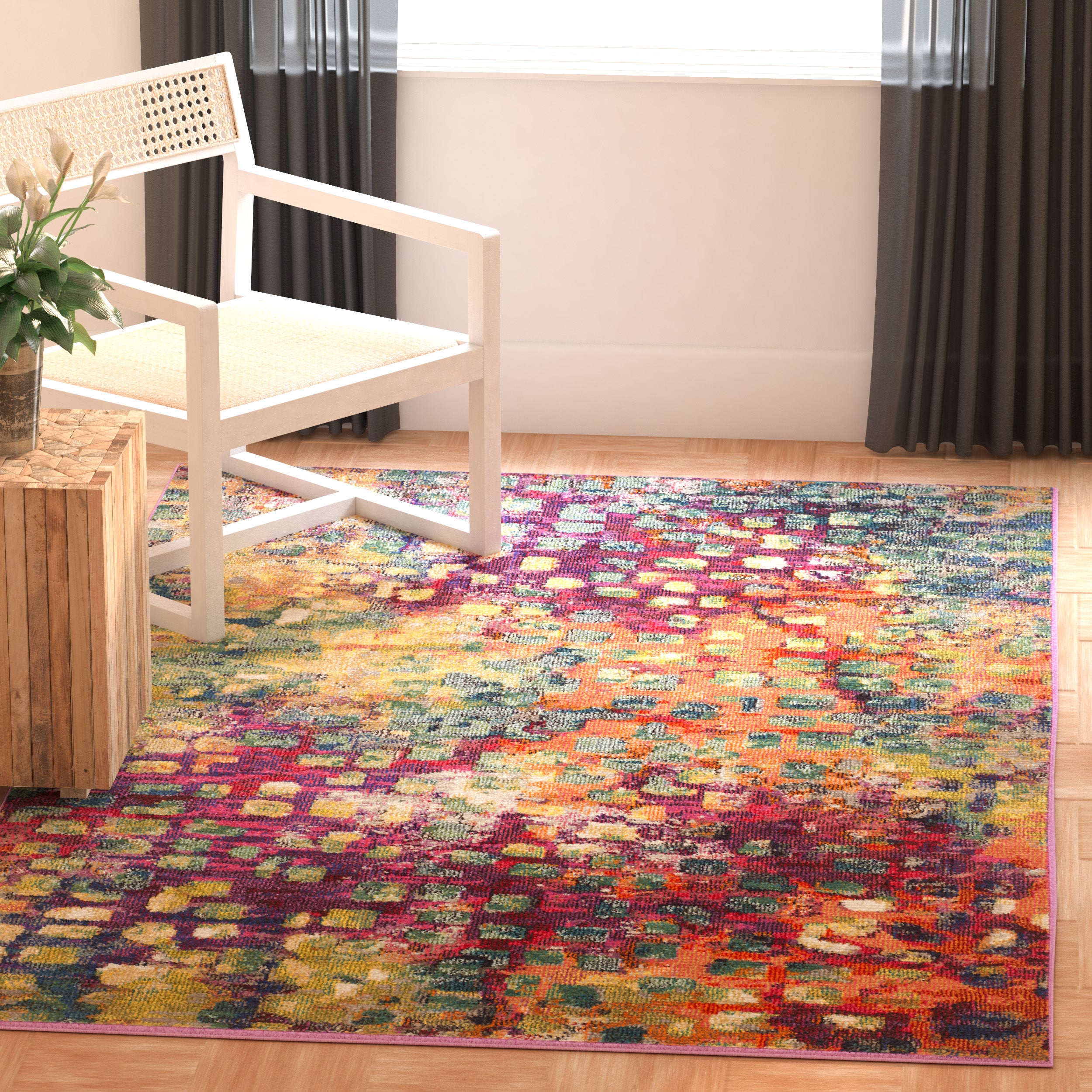 Monaco MNC225D rug, a vibrant addition to your home decor that effortlessly combines free-spirited Bohemian style with traditional Persian designs. This rug from the Monaco Collection is a unique blend of bold colors and intricate patterns, perfect for adding a touch of chic flair to any room.