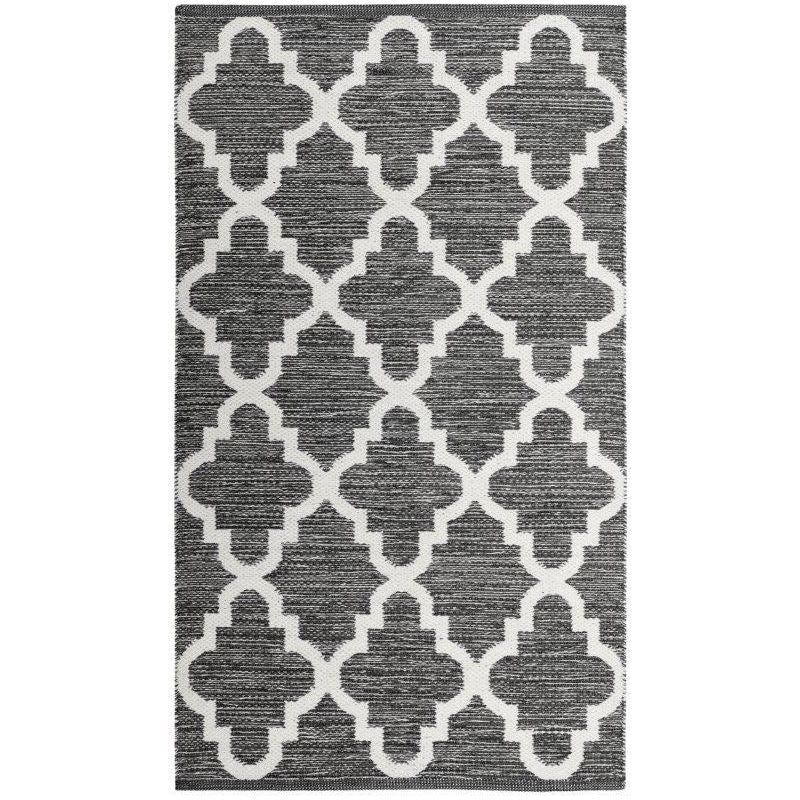 Montauk MTK611J Charcoal Ivory rug, a stunning addition to any home decor. This collection effortlessly blends casual designer styling with a flat weave construction, making it perfect for coastal and contemporary homes alike. Hand-crafted in India using high-quality cotton, these rugs boast vibrant colors that will brighten up any room.