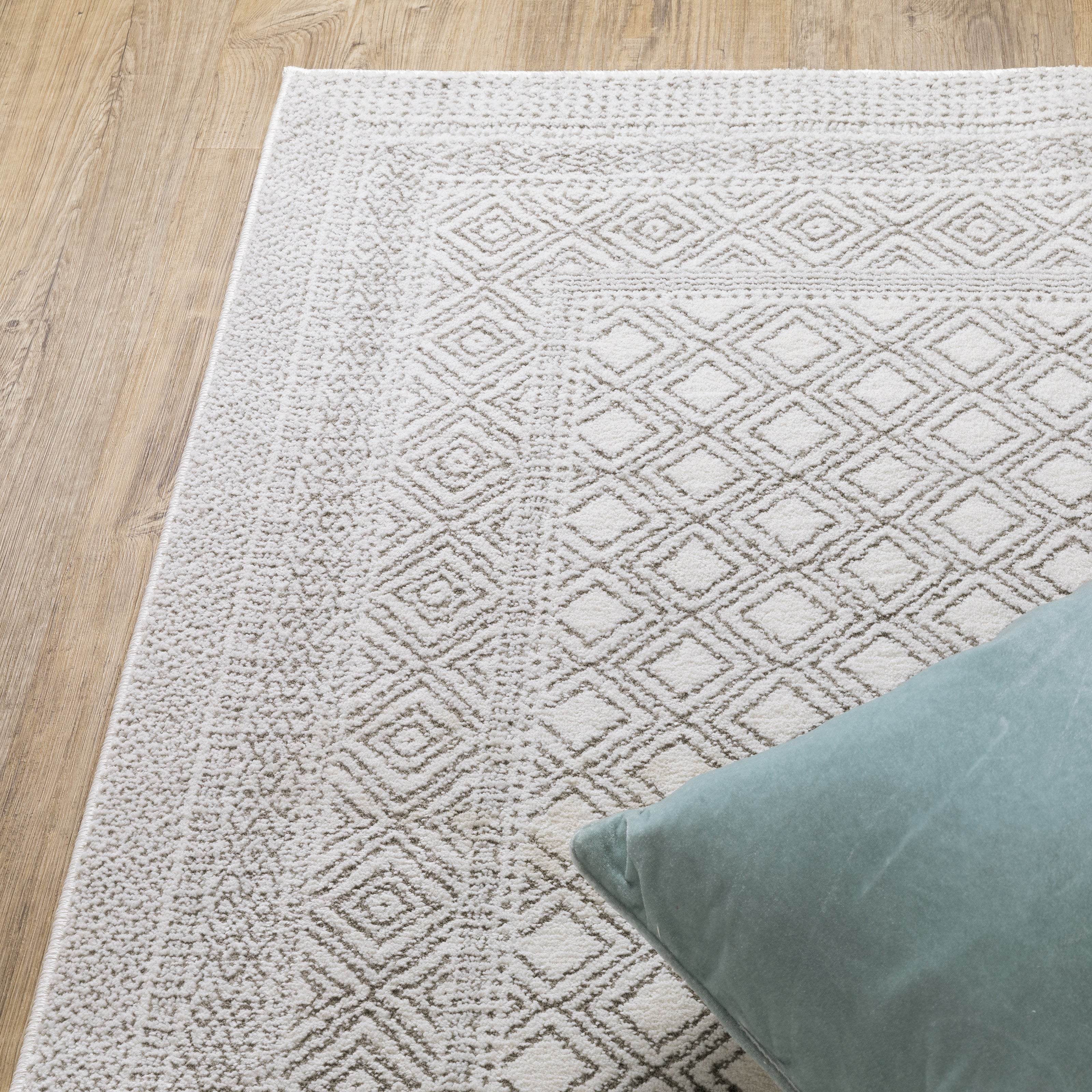 "First off, I love this rug .. the colours and the texture of the rug turned out to be exactly what I was hoping for - a very neutral-looking moss green and ivory background with a few tiny pale blue accents. Love the look!"