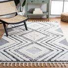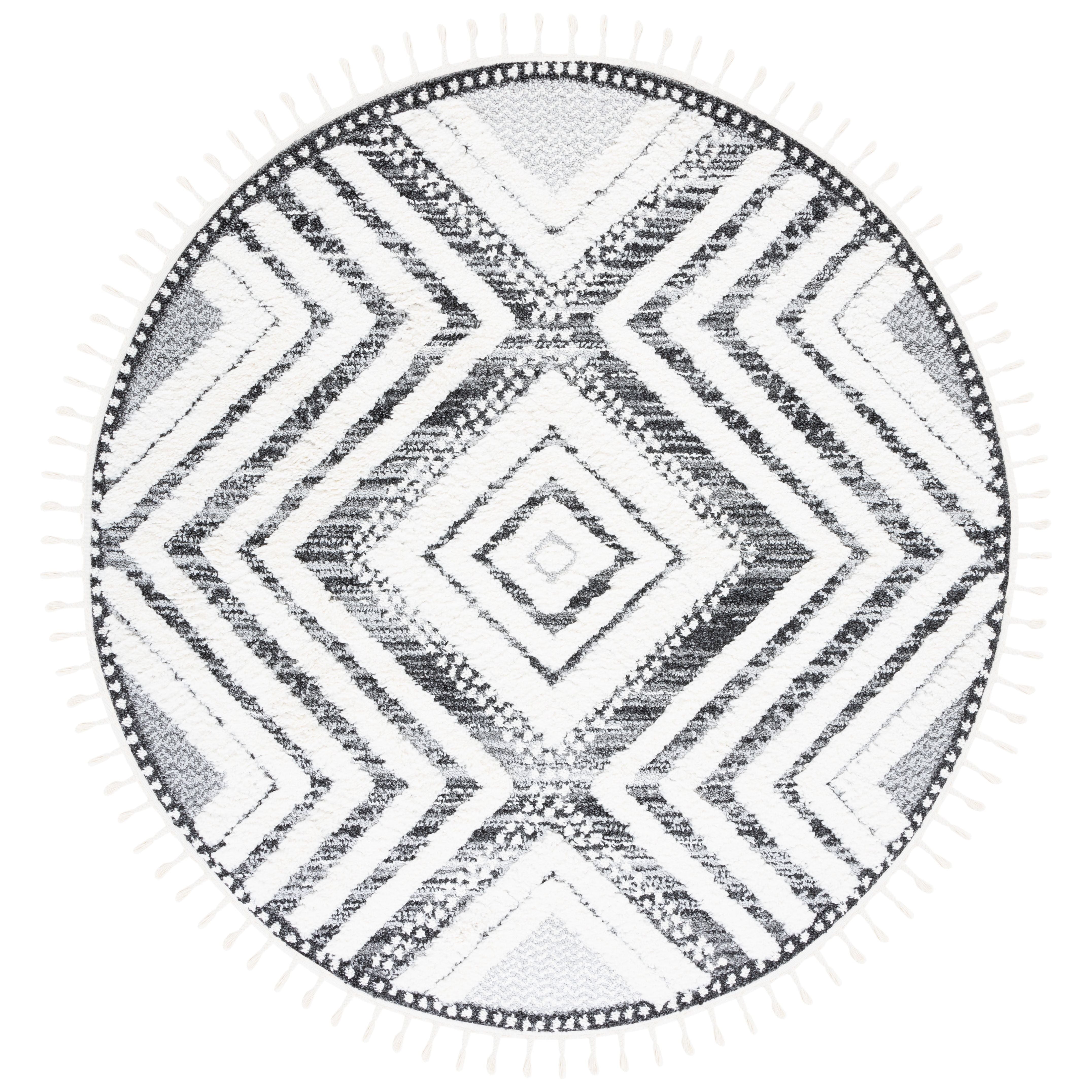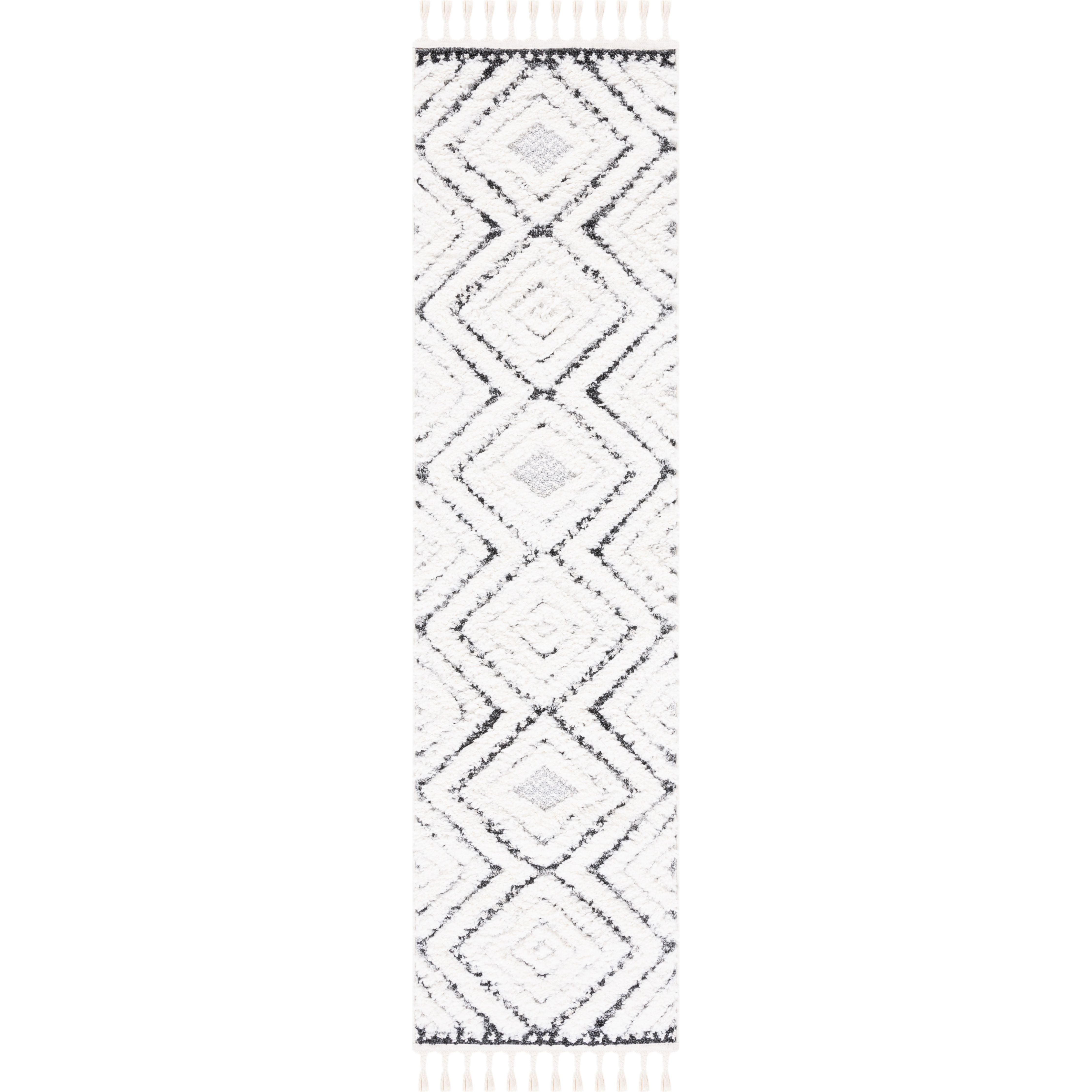 Elevate your living space with the enchanting Moroccan Tassel Shag MTS636A rug from SAFAVIEH. Transport yourself to a bygone era with its intricate diamond patterns and luxurious textures, perfect for adding a touch of Old World charm to your home. The braided fringe detail adds a playful element to these thick shag rugs, bringing a rustic-chic vibe to any room.
