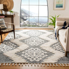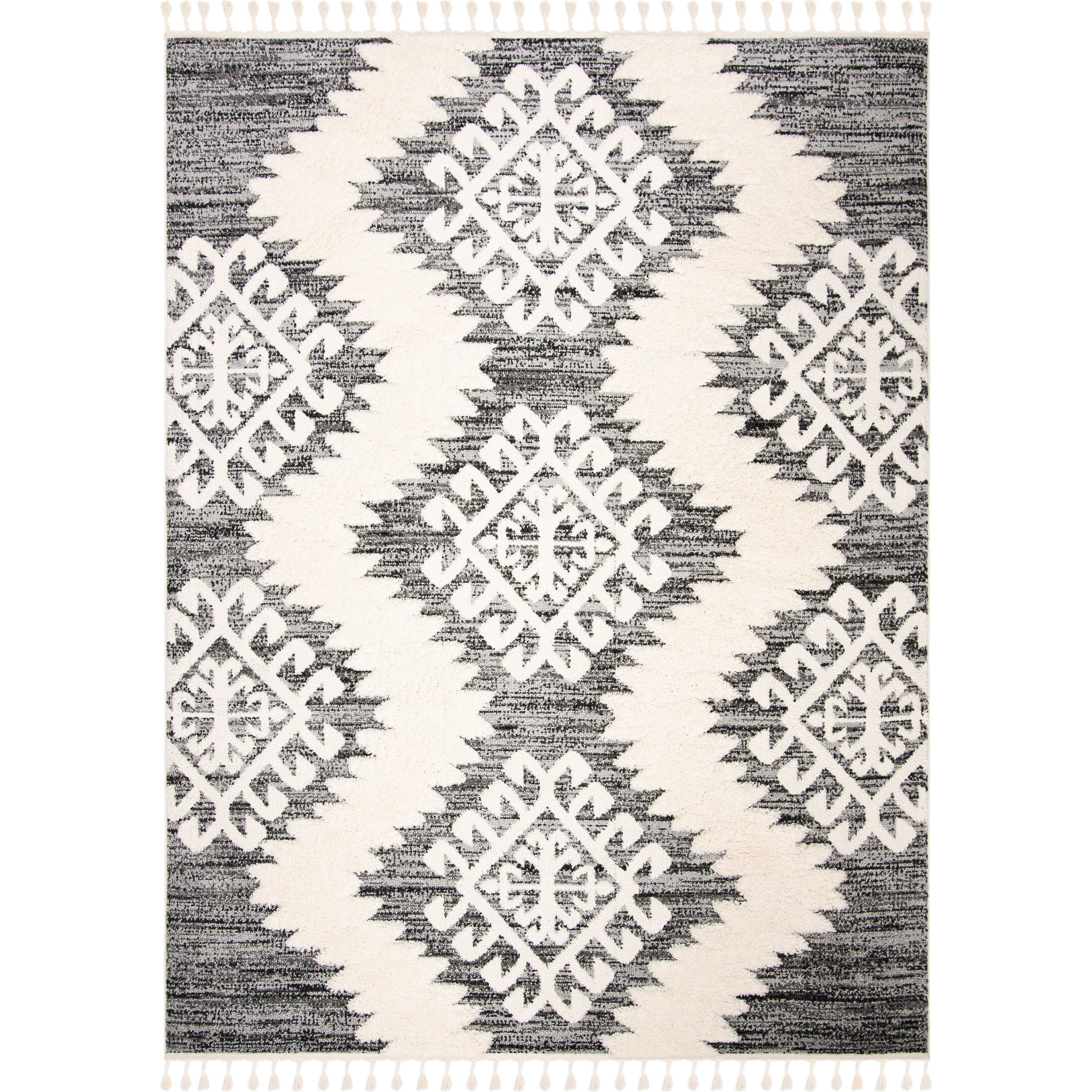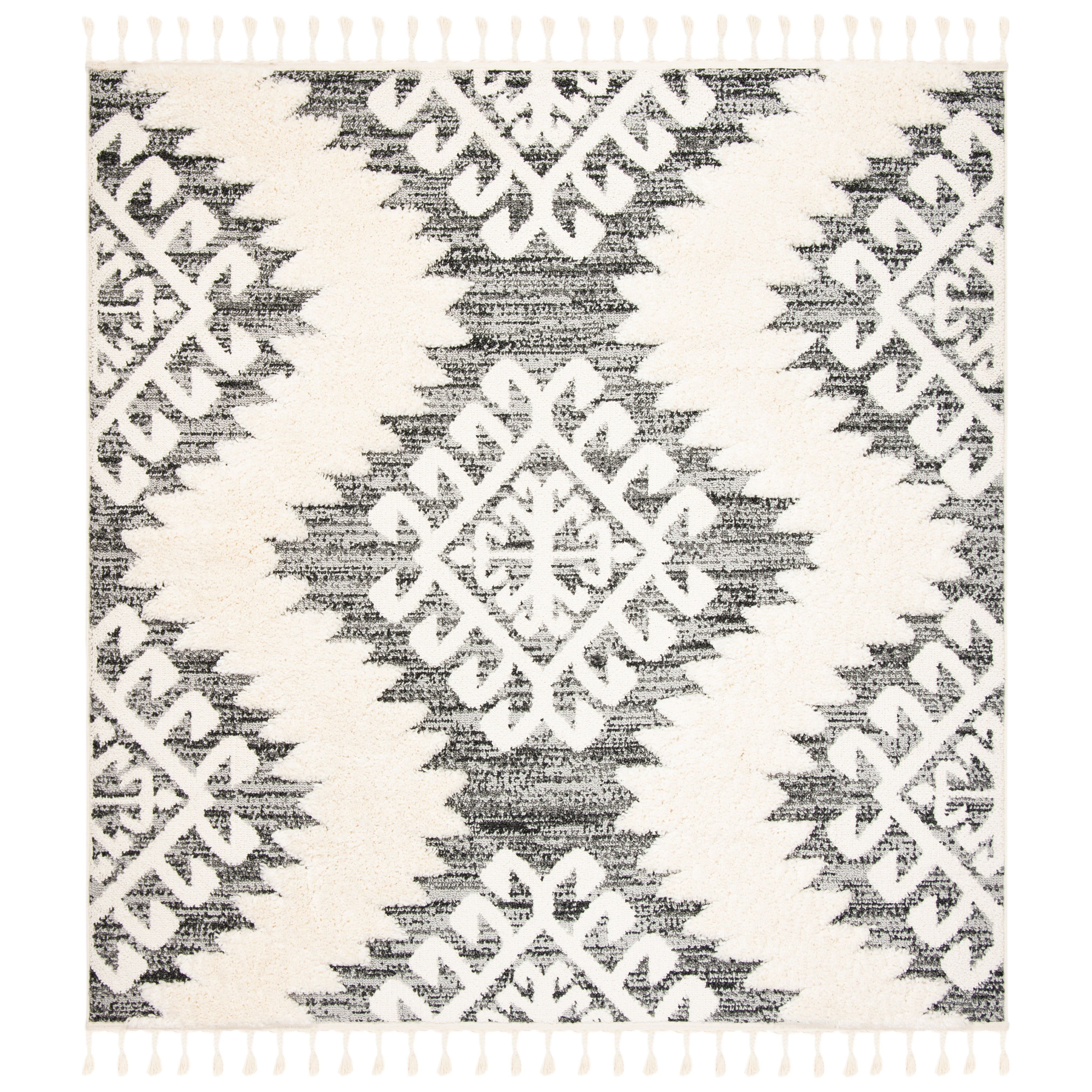 Elevate your home décor with the Moroccan Tassel Shag MTS652F rug from SAFAVIEH's collection. Featuring intricate diamond designs and luxurious textures, these shag rugs exude Old World charm. The nomadic motifs bring a rustic-chic vibe to any space, while the braided fringe adds a whimsical touch. Crafted from soft synthetic yarns, these machine-woven rugs are both durable and plush, enriching your home for years to come with a thickness of approximately 1.54 inches.