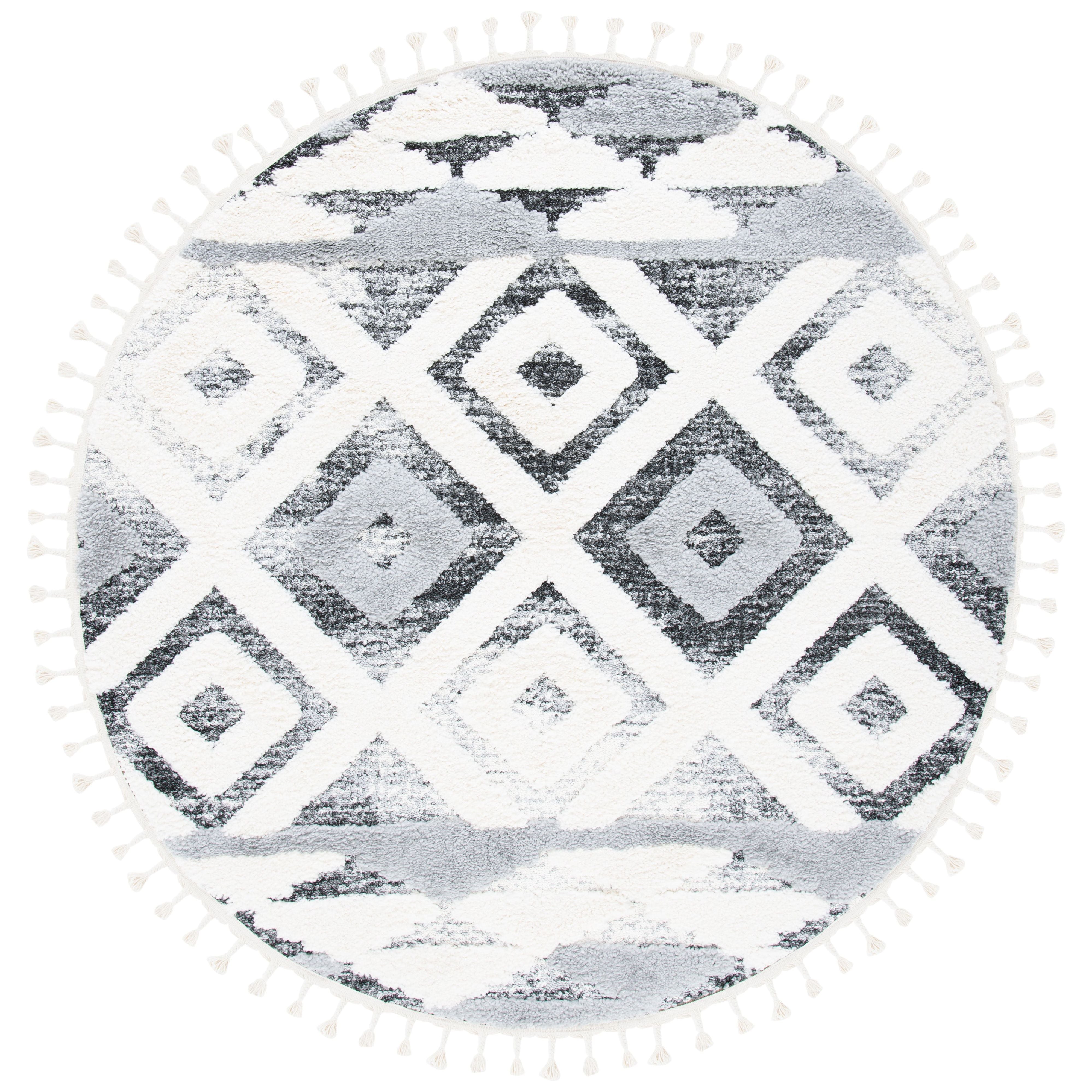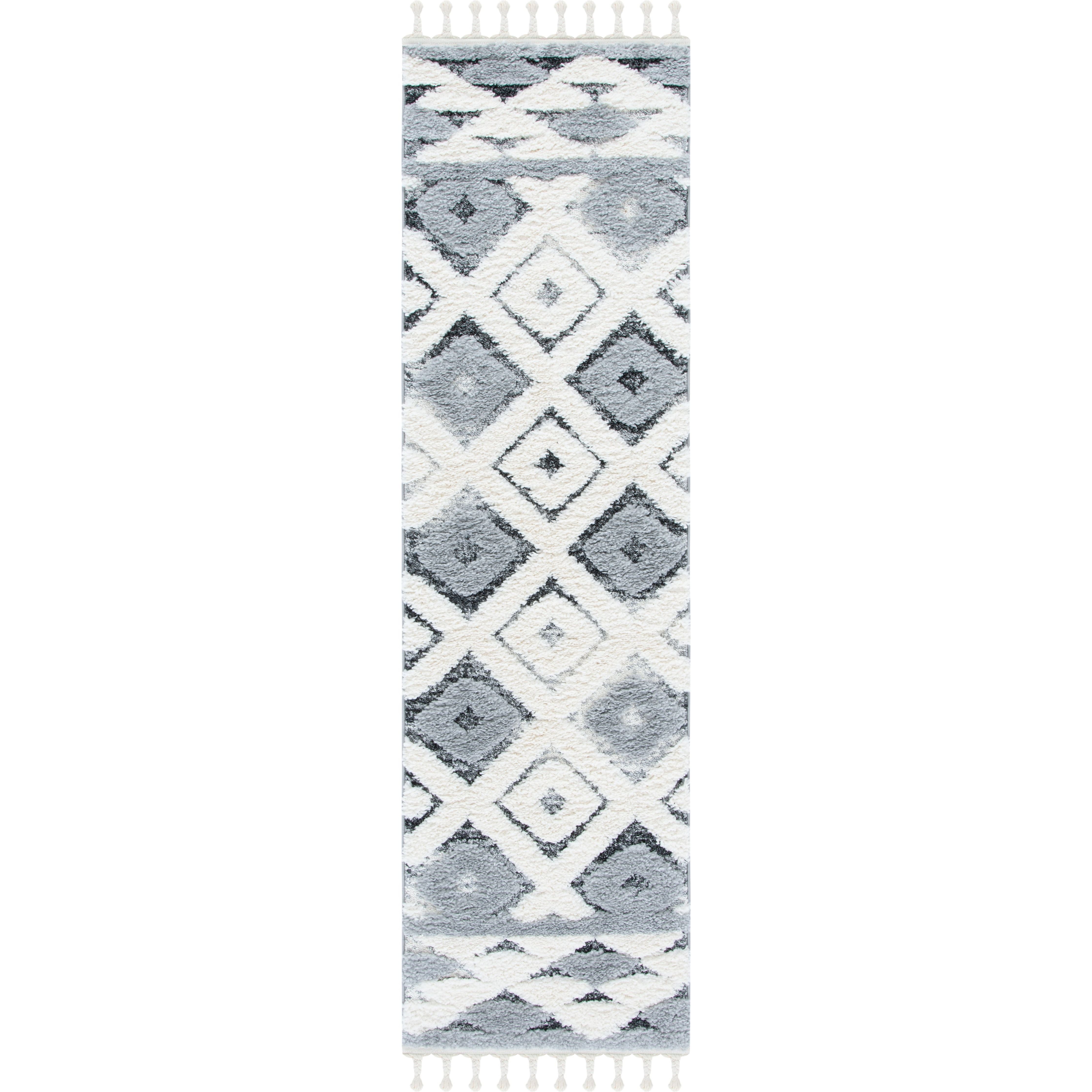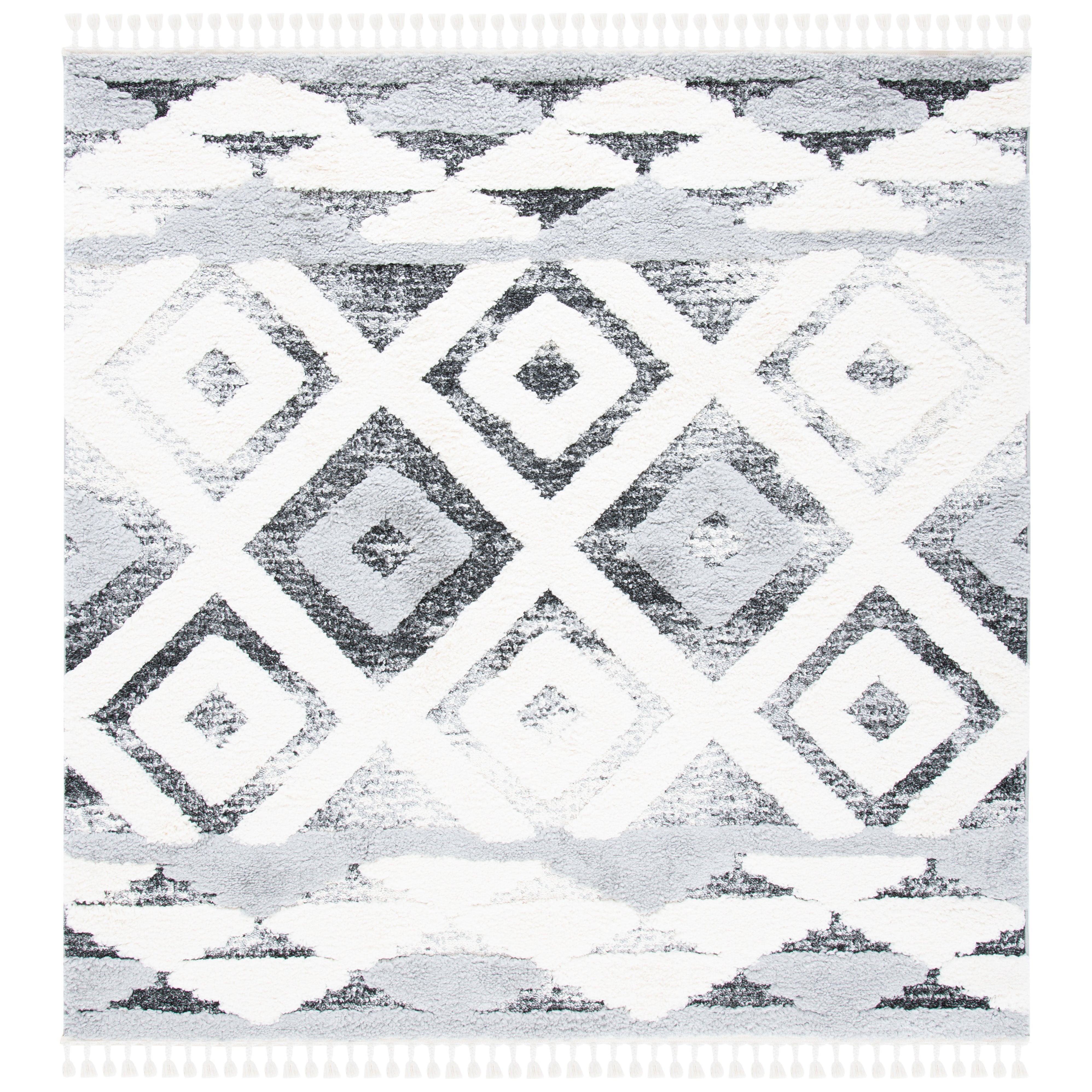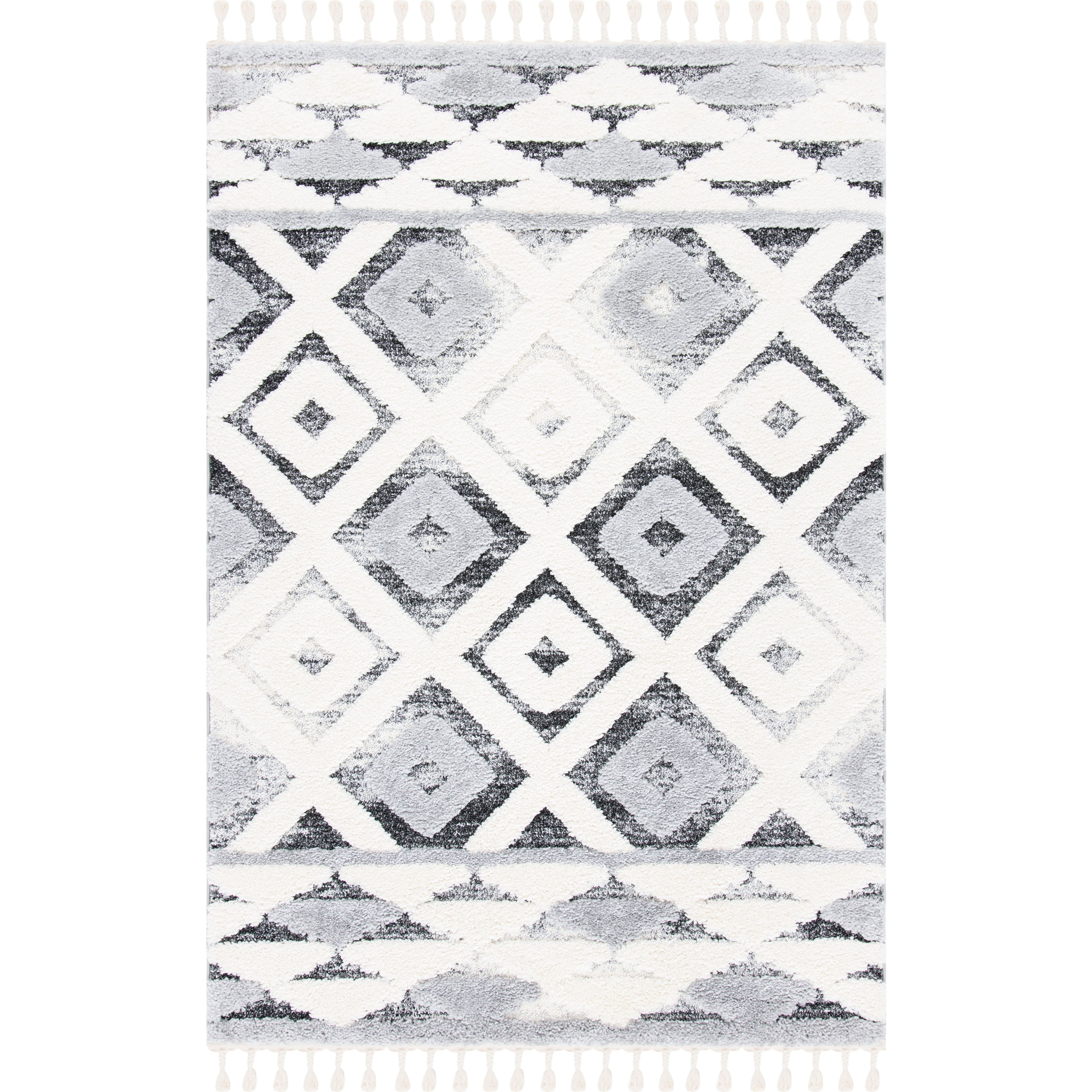 Step into a world of timeless elegance with the Moroccan Tassel Shag MTS661F rug from SAFAVIEH. The intricate diamond patterns and luxurious textures of this thick shag rug will bring a touch of Old World charm to your living space. Embracing nomadic influences with a modern twist, these rugs feature braided fringe details for a whimsical finish.