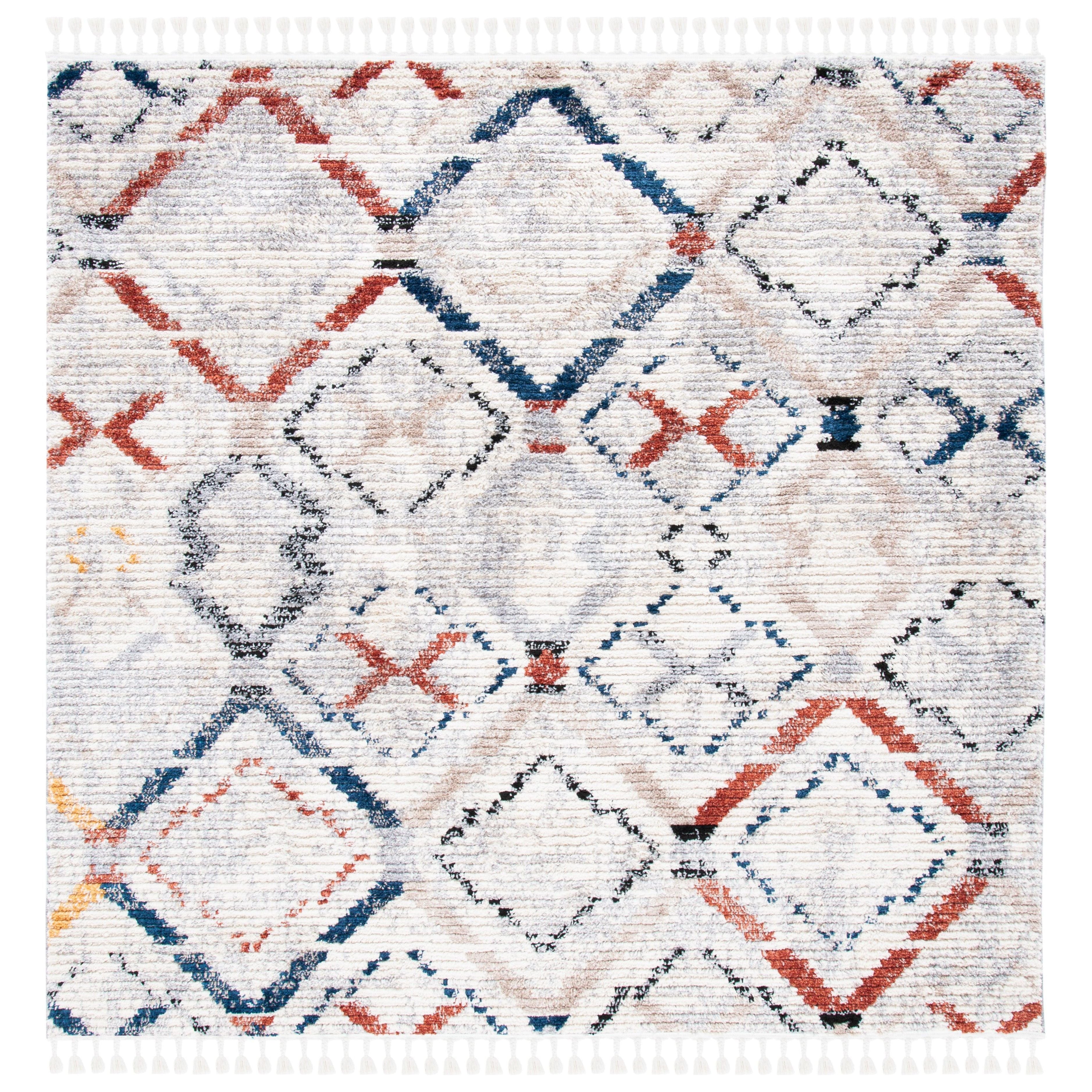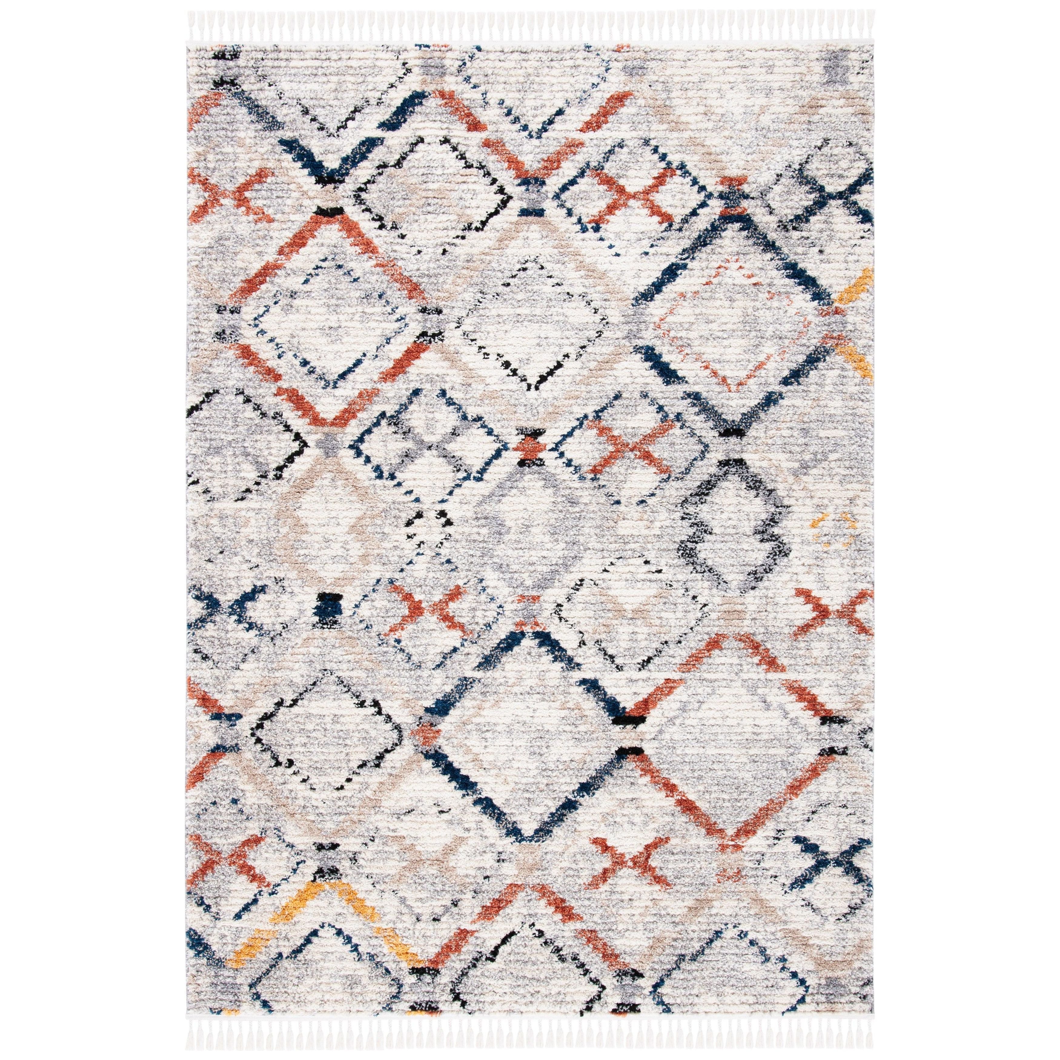 Elevate your living space with the stunning Morocco MRC838F area rug from SAFAVIEH’s renowned Morocco Collection. Featuring charming diamond motifs in an array of colors and delicate tassels for a touch of bohemian elegance, this rug is sure to make a statement in any room. Crafted from premium synthetic fibers, it offers both durability and softness underfoot, creating a cozy atmosphere in your home. With a lush pile height of approximately 0.79 inches, this rug adds luxurious comfort to your floors.