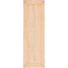 Natural Fiber NF109P, a beautifully handmade rug crafted from textured jute fibers to create a sleek, well-defined space in your home. The clean border design effortlessly frames any coffee table or dining area, adding a touch of elegance to your decor. This versatile rug complements various styles including cottage, farmhouse, rustic, bohemian, contemporary, casual, and coastal themes.