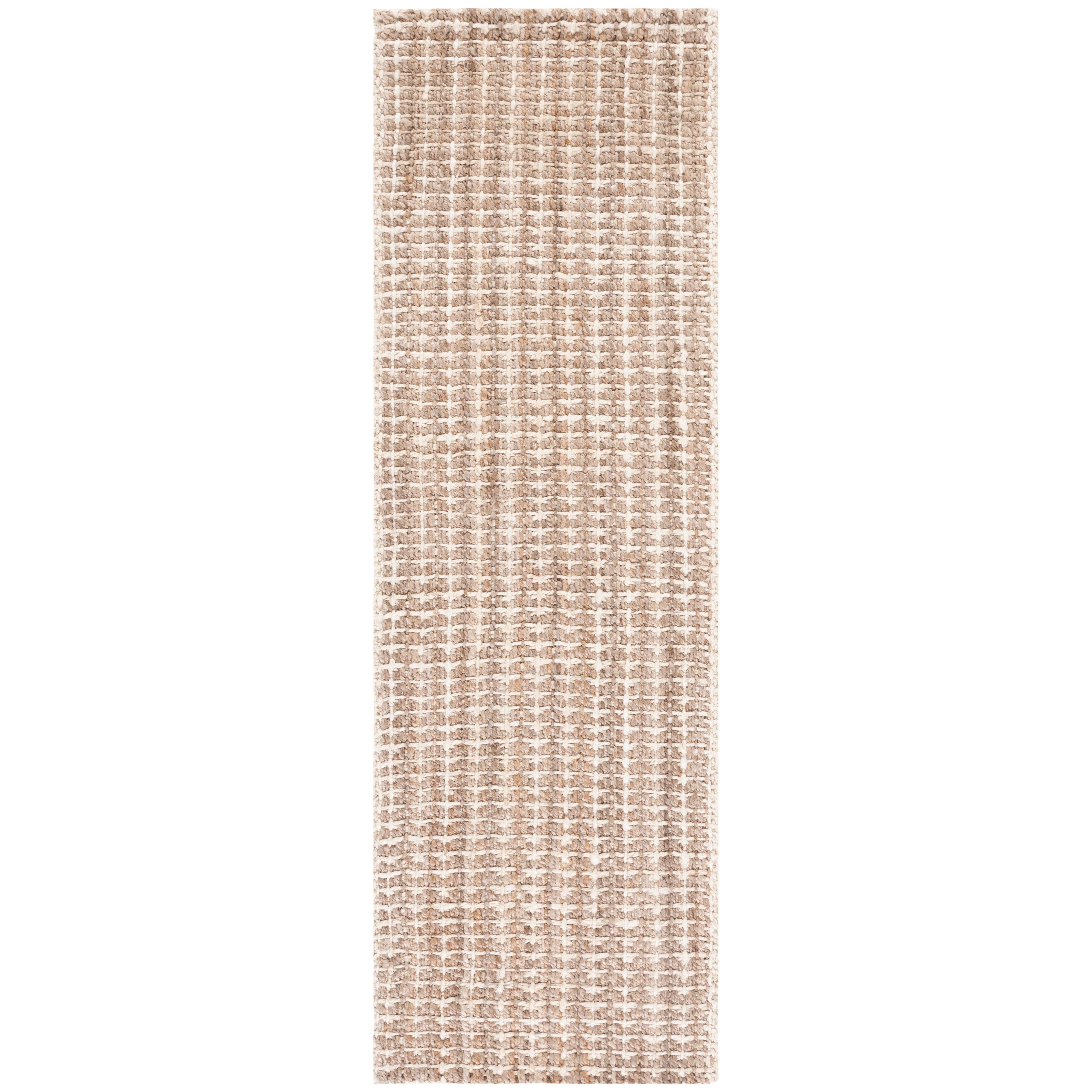 Enhance your living space with the Natural Fiber NF188A rug from SAFAVIEH’s renowned collection. Hand-woven with natural jute fibers in a soothing brown hue intertwined with ivory accents, this rug effortlessly complements various décor styles. Perfect for medium- to low-traffic areas, its textured design adds depth and warmth to any room, making it an ideal choice for layering or serving as a focal point with its subtle basket weave pattern. With a thickness of approximately 0.5 inches, this rug strikes the perfect balance between comfort and durability.
