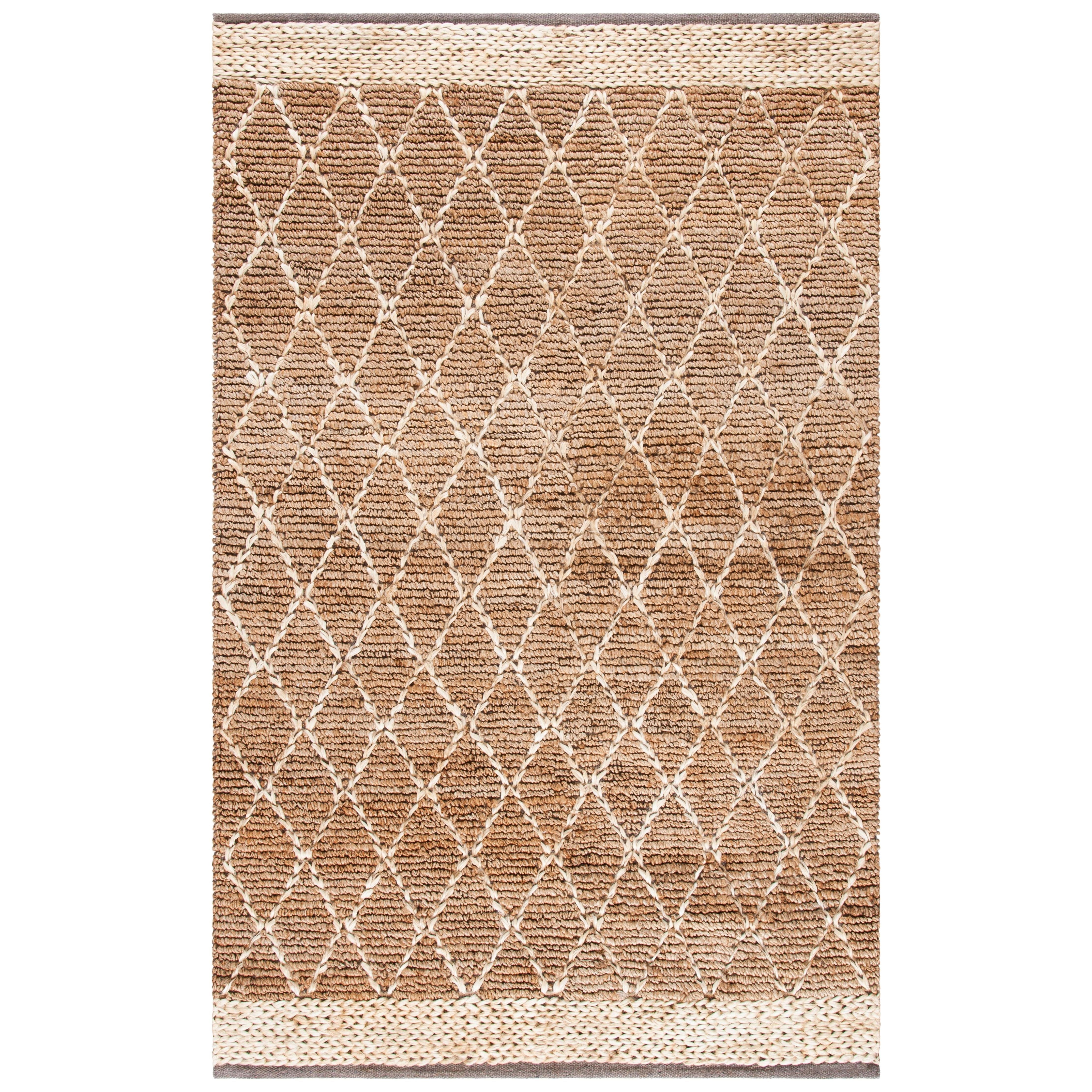 Elevate your home decor with the Natural Fiber NF951A rug, woven with natural jute fibers for a chic boho vibe. The rug features a charming diamond trellis geometric design in a versatile natural brown color, blending effortlessly with farmhouse, cottage, bohemian, and coastal interior styles. With a plush thickness of 0.5 inches, this rug adds both comfort and style to any room.