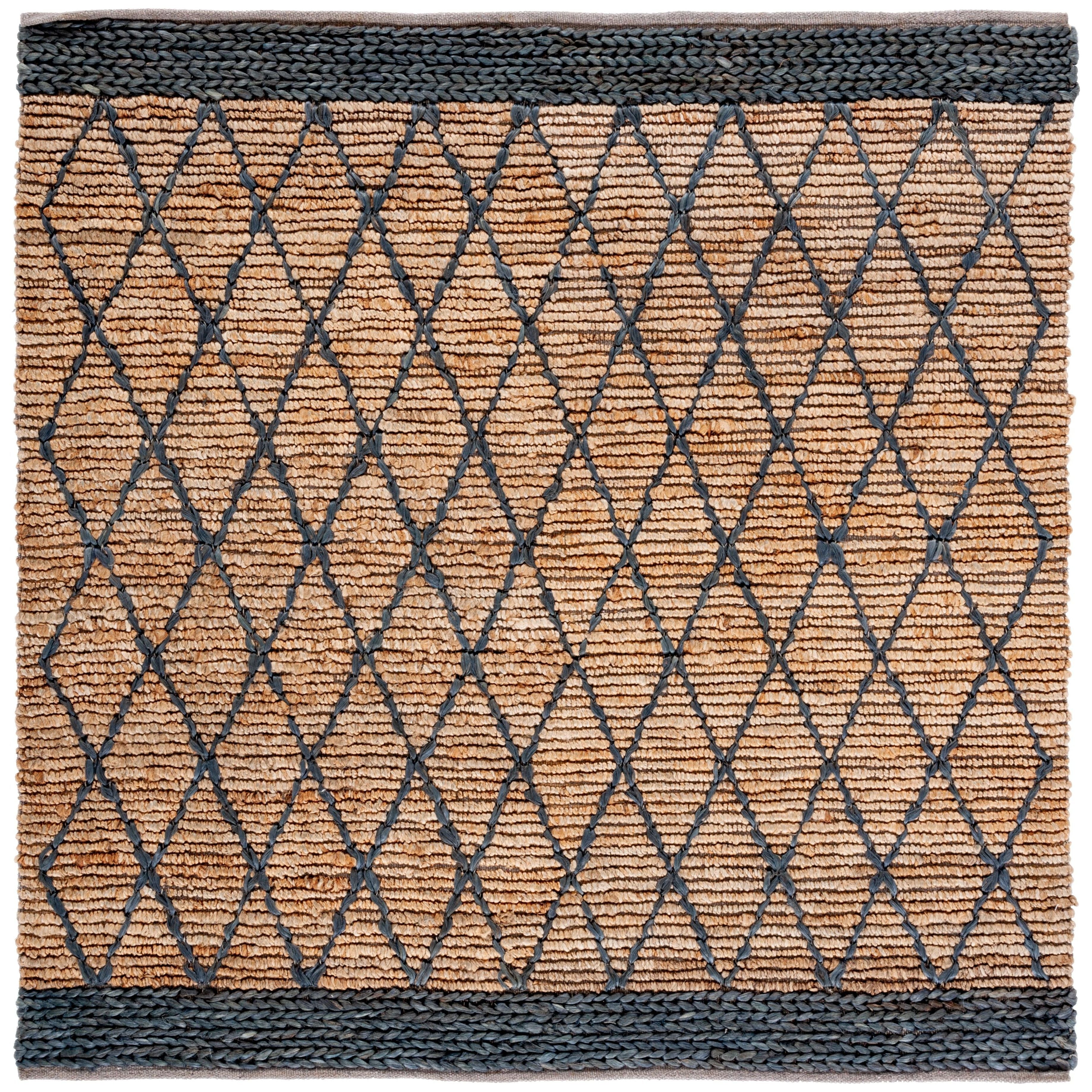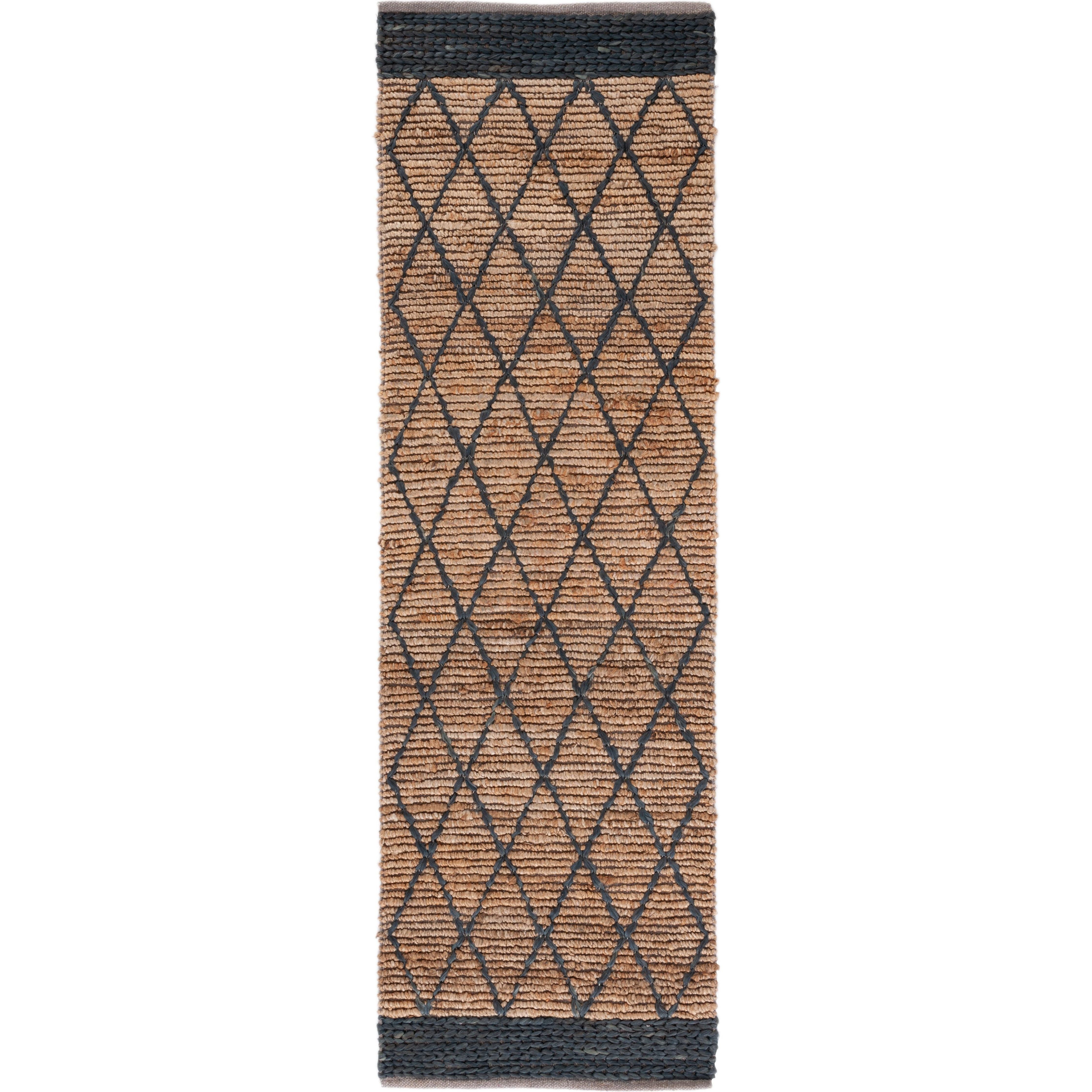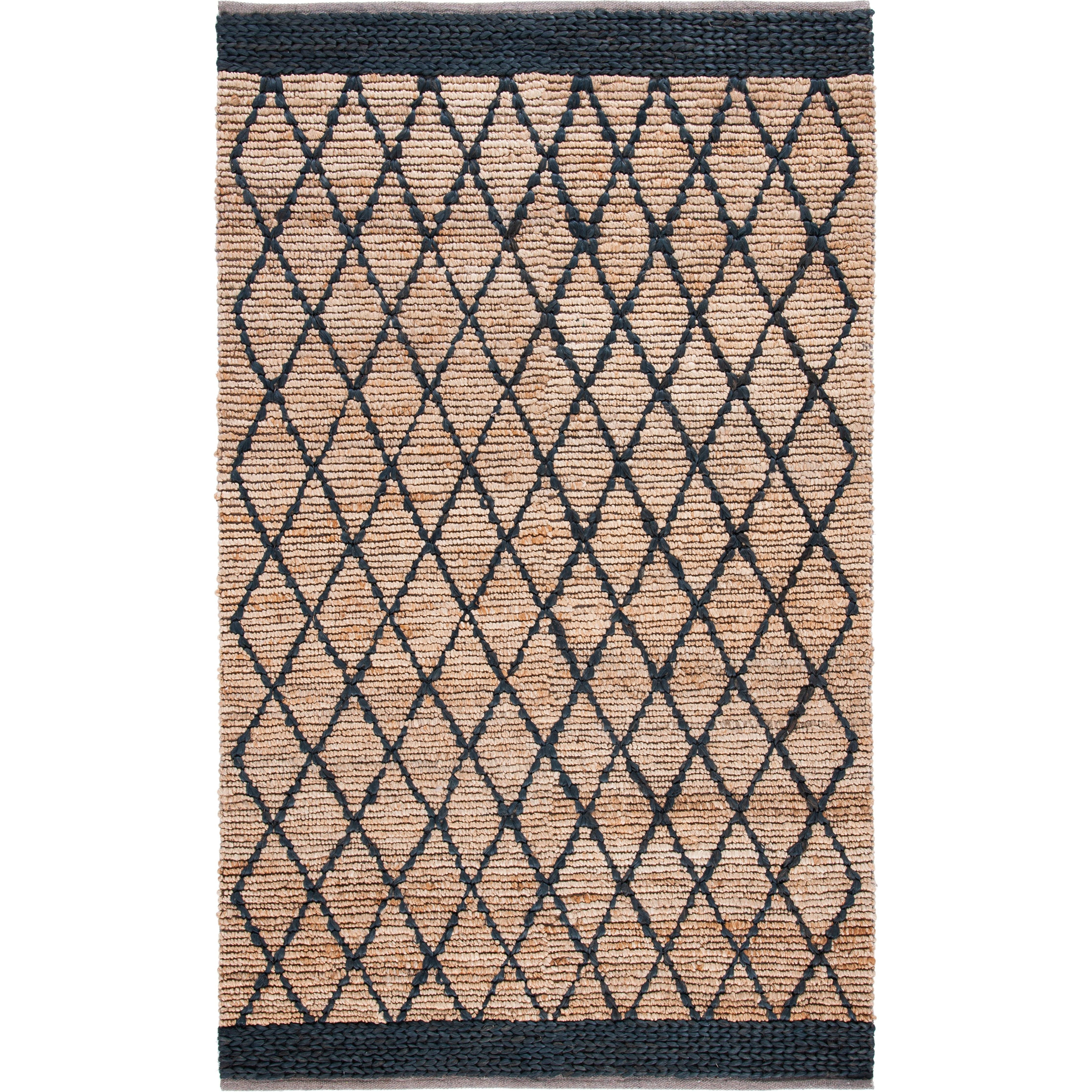 stunning Natural Fiber NF951Z rug, hand-woven from jute fibers to create a gorgeously textured boho aesthetic. Its natural brown hue and diamond trellis geometric pattern make it a versatile addition to various interior styles like farmhouse, cottage, bohemian, contemporary, casual, and coastal decor themes. This rug boasts a comfortable thickness of approximately 0.5 inches, adding both style and comfort to your space.