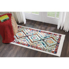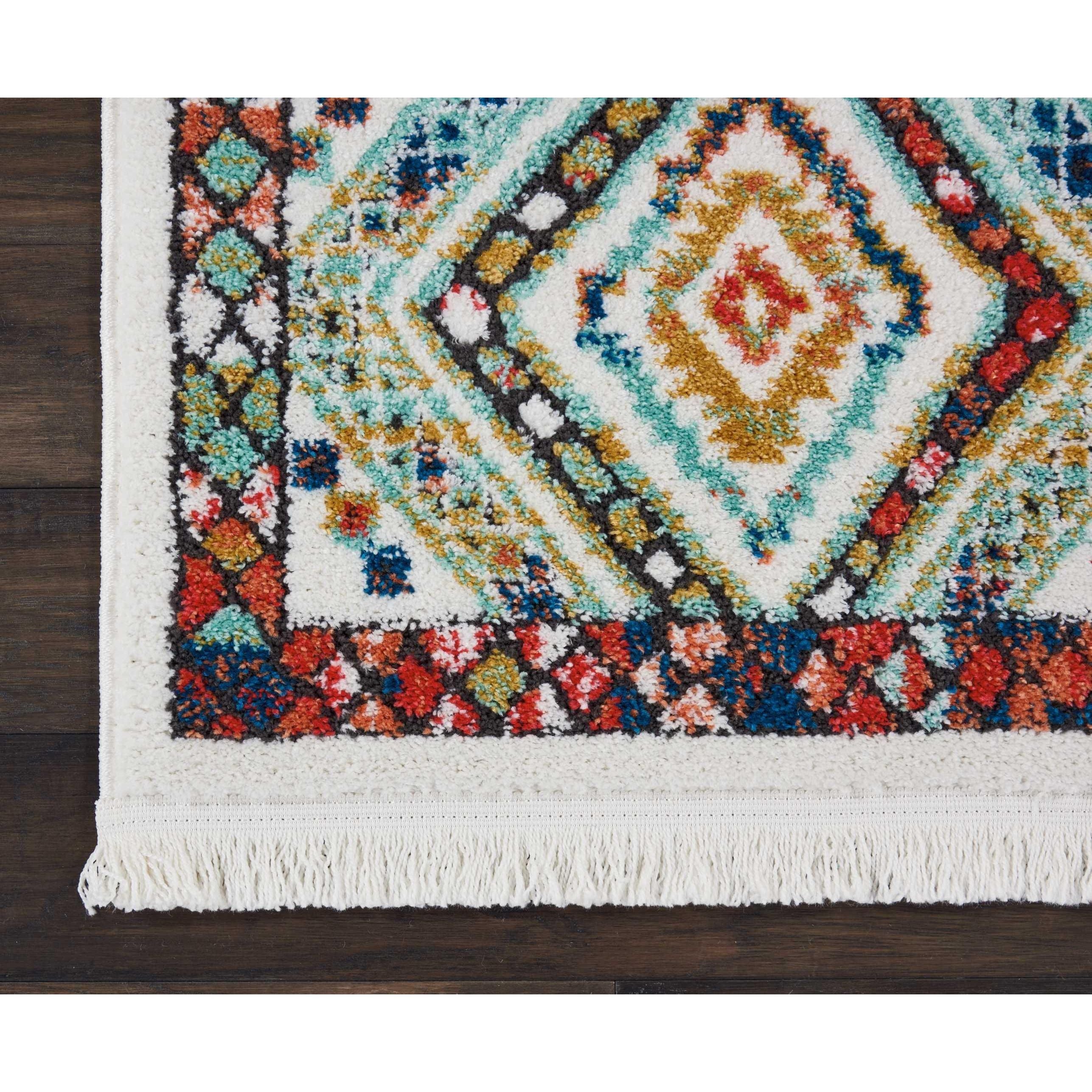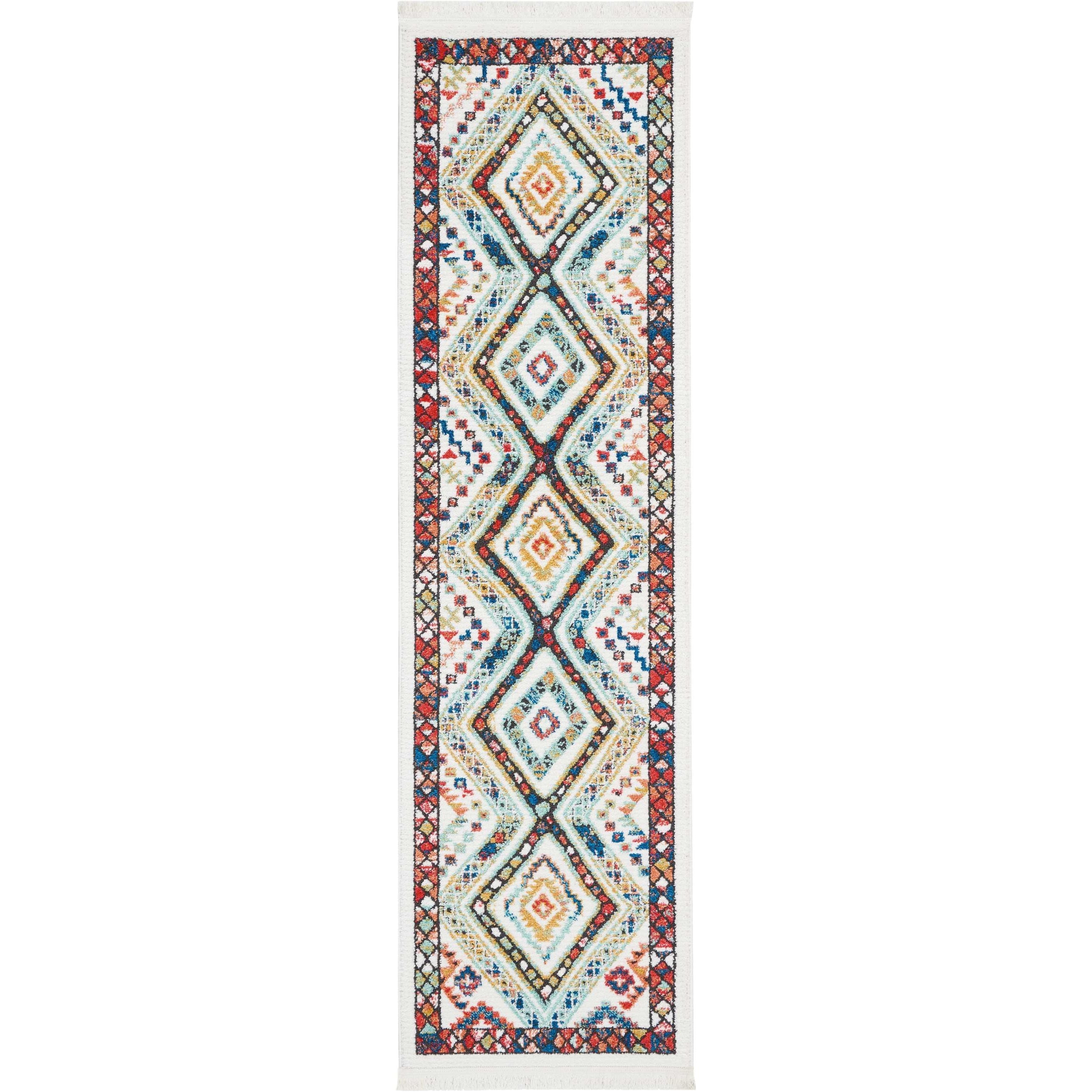 Navajo NAV02 White rug, a vibrant addition to your home decor. The lively diamond shapes create a sense of movement and energy in this tribal-inspired design. With traditional motifs and a striking border, this rug from the Navajo Collection is sure to enhance any room's aesthetic appeal.