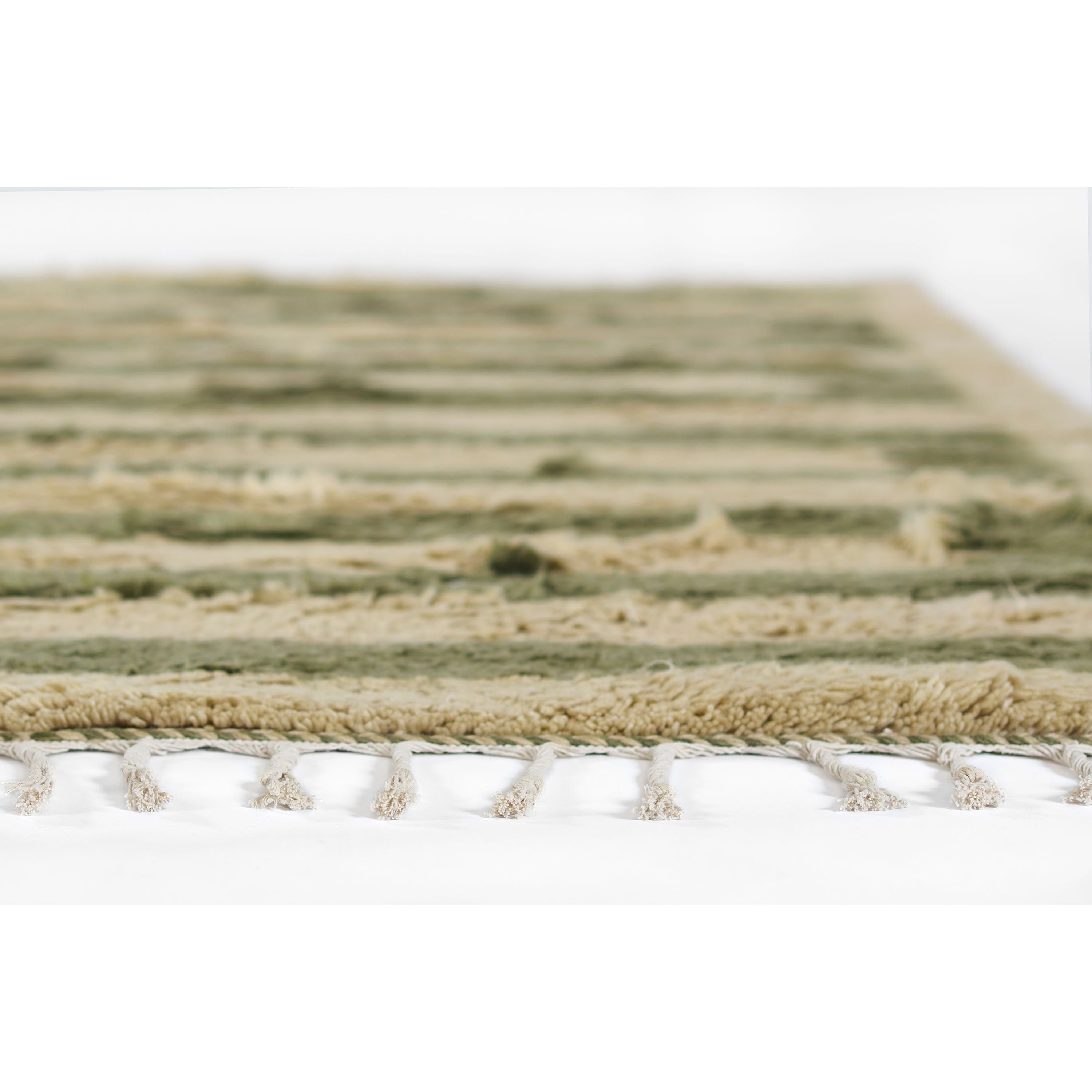 Neo Nem 1 Green rug, a luxurious addition to your home decor. Handwoven with care using 100% New Zealand wool and mill-spun yarns, each rug is crafted in India with locally dyed yarns in the traditional Vat Dying method. To ensure ultimate softness underfoot, every rug undergoes two rounds of thorough washing after being mildly burnt on the back for added durability.