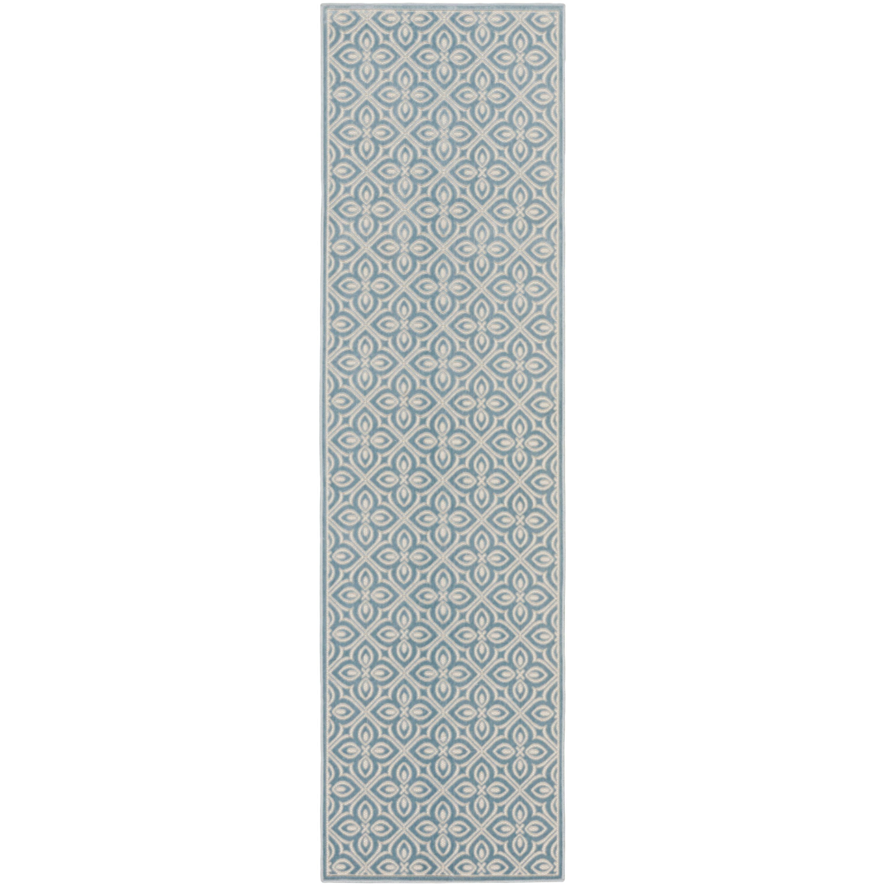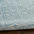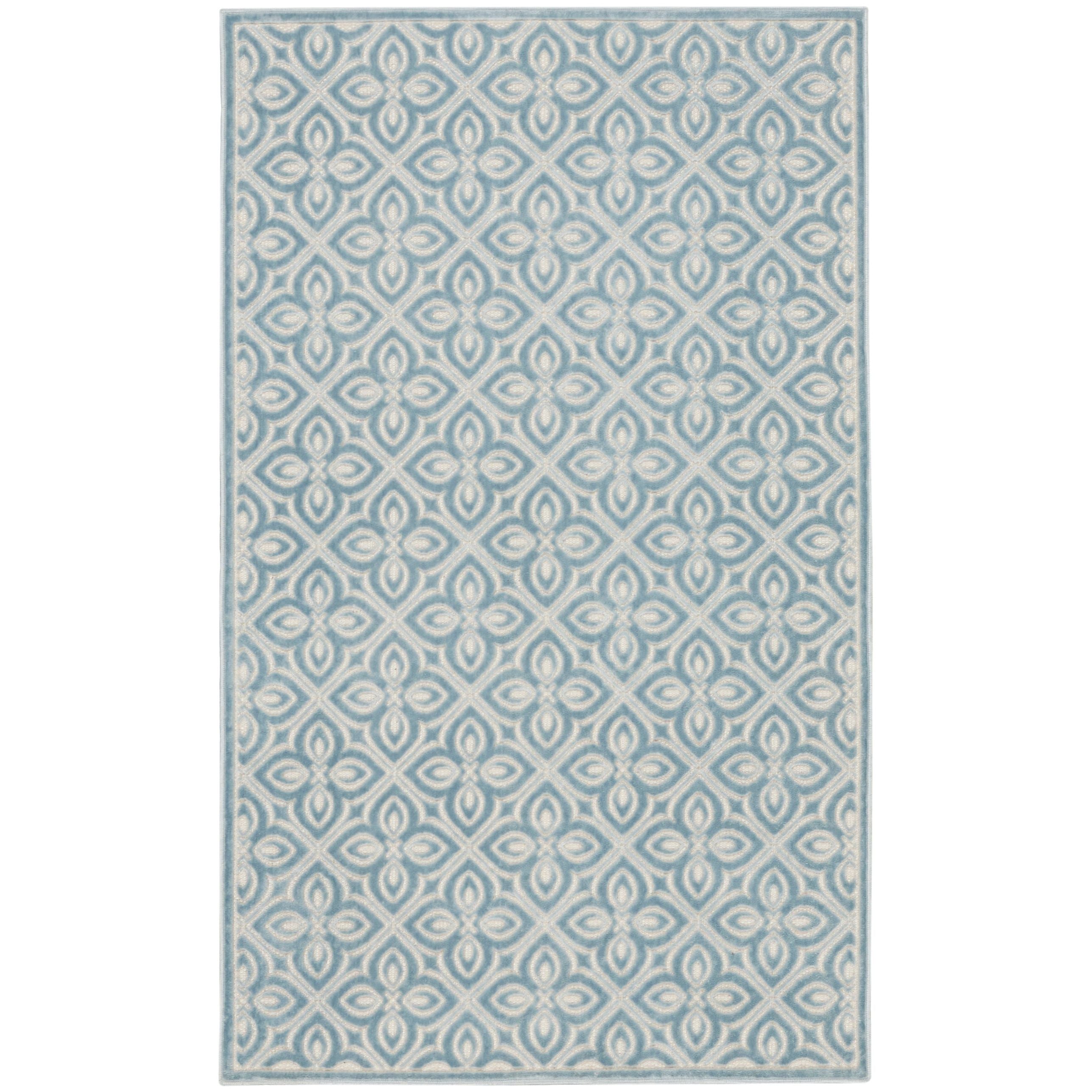 Timeless charm meets modern practicality with this blue Washable Charm rug. The floral pattern, inspired by classic decorative tile, is enhanced by a subtle high-low texture that adds a touch of visual interest to your surroundings. Machine-made in a sleek, low-profile construction for fuss-free care: simply toss into your washing machine and air dry.
