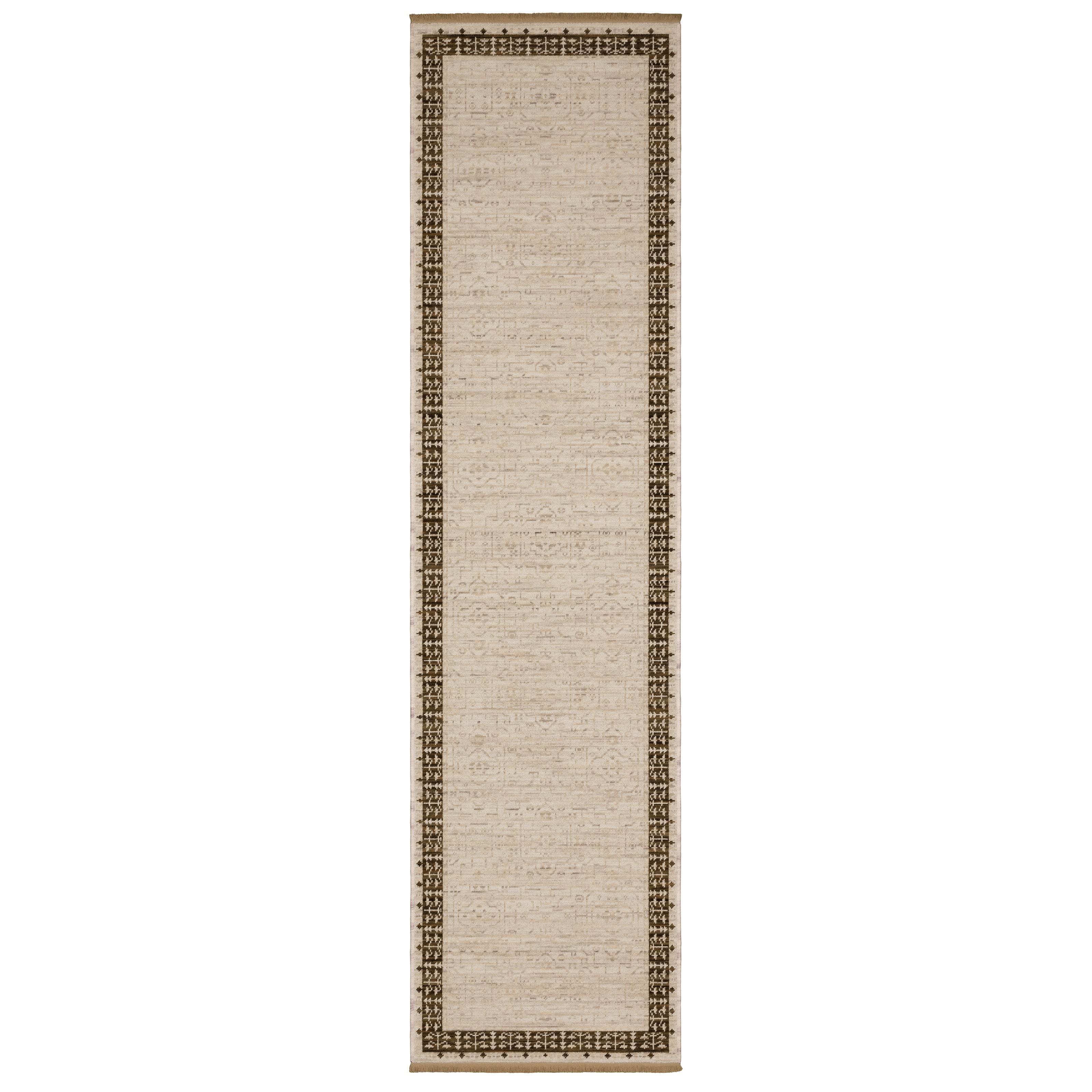 The classically styled Acacia collection features earthy, neutral tones of saturated brown, warm birch and muted gold which are subtly accented with touches of slate blue, soft clay, and moss green. The space-dyed wool and nylon blend is woven in Egypt on an Axminster loom and features incorporated cotton fringe.