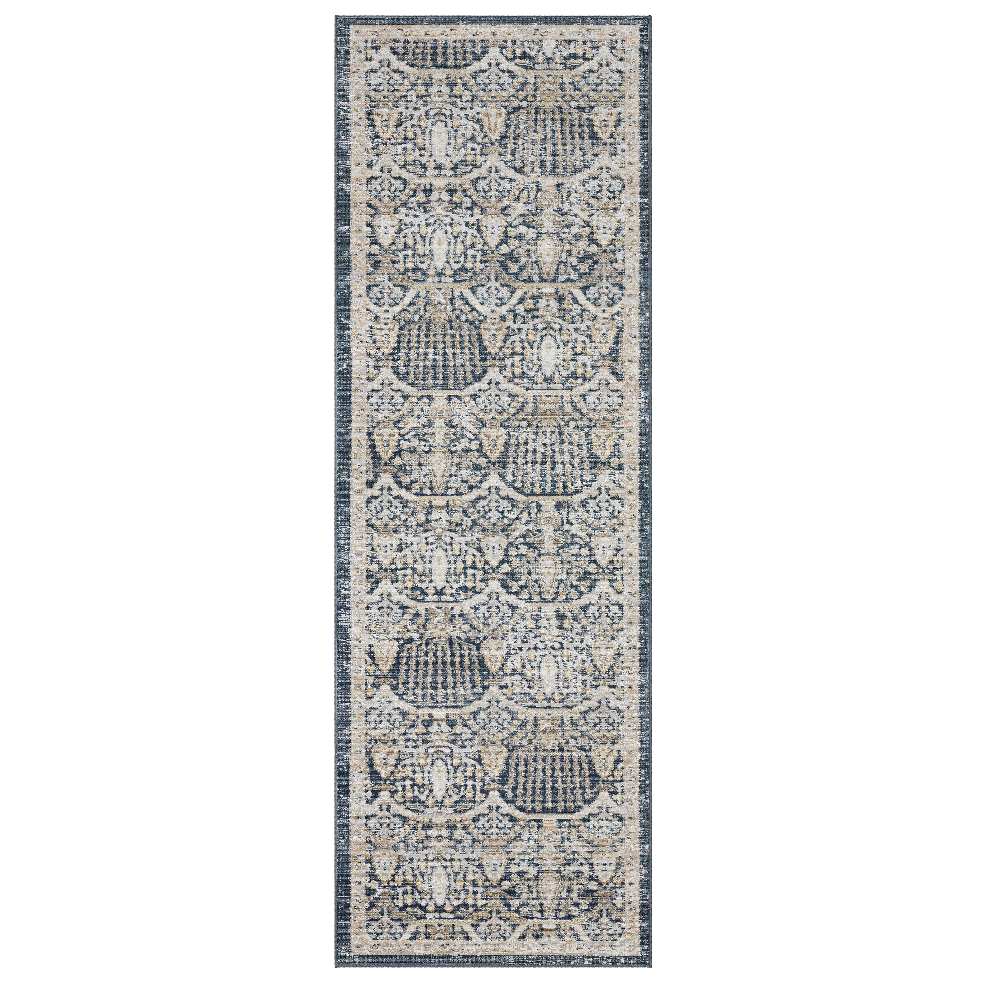 The versatile Cavett collection features a range of designs from traditional Persian looks to textural stripes and modern abstract pieces. These low-profile area rugs are constructed with soft, durable synthetic fibers in a washed palette of navy, teal and green accented with soft shades of clay and gold. The Cavett collection combines the family and pet friendly properties with a super soft hand and the vintage look of a hand-knotted heirloom all at an incredible value.