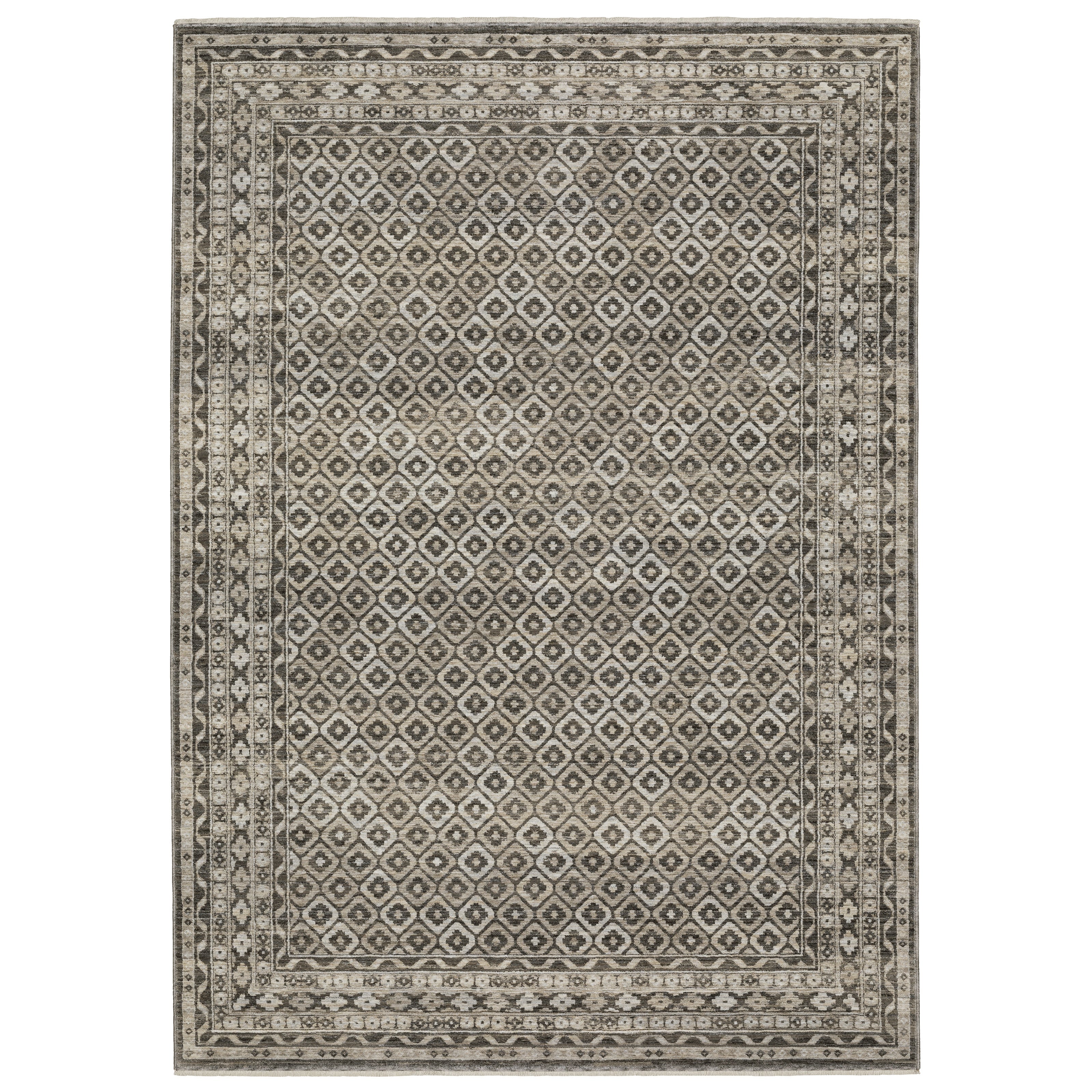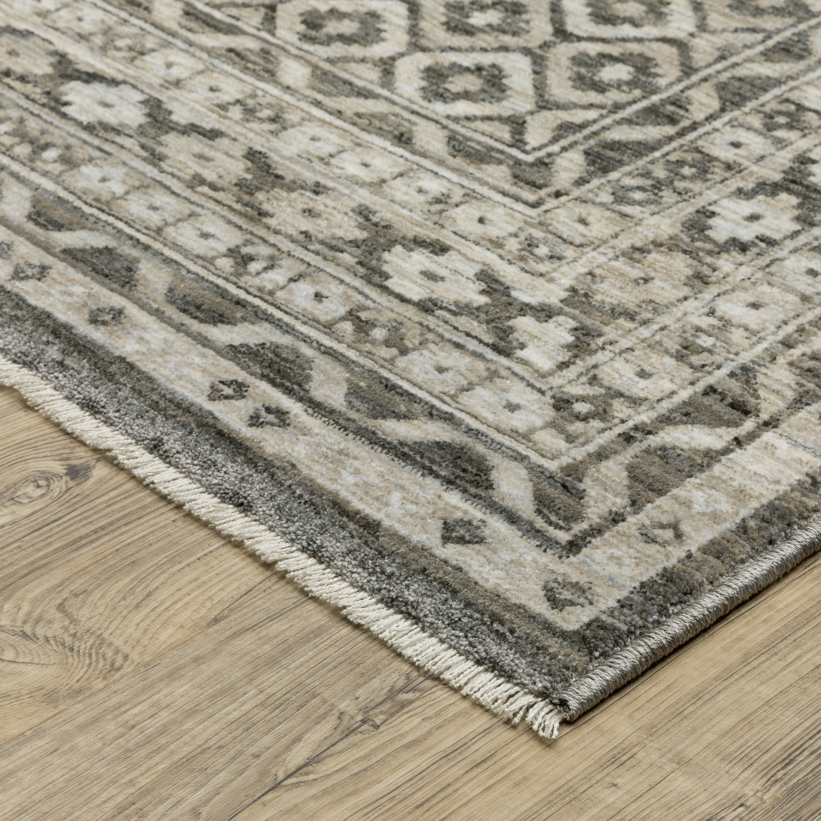The Chamberlain collection features a dense, low profile, million-point construction power-loomed of incredibly soft polyester yarns that are space-dyed in a beautiful range of neutral shades from deep charcoal to soft ivory. Accent yarns of multi-level shrink polyester add surface interest to global traditional designs, featuring Persian motifs in allover patterns, center medallions and a vintage stripe in the collection.