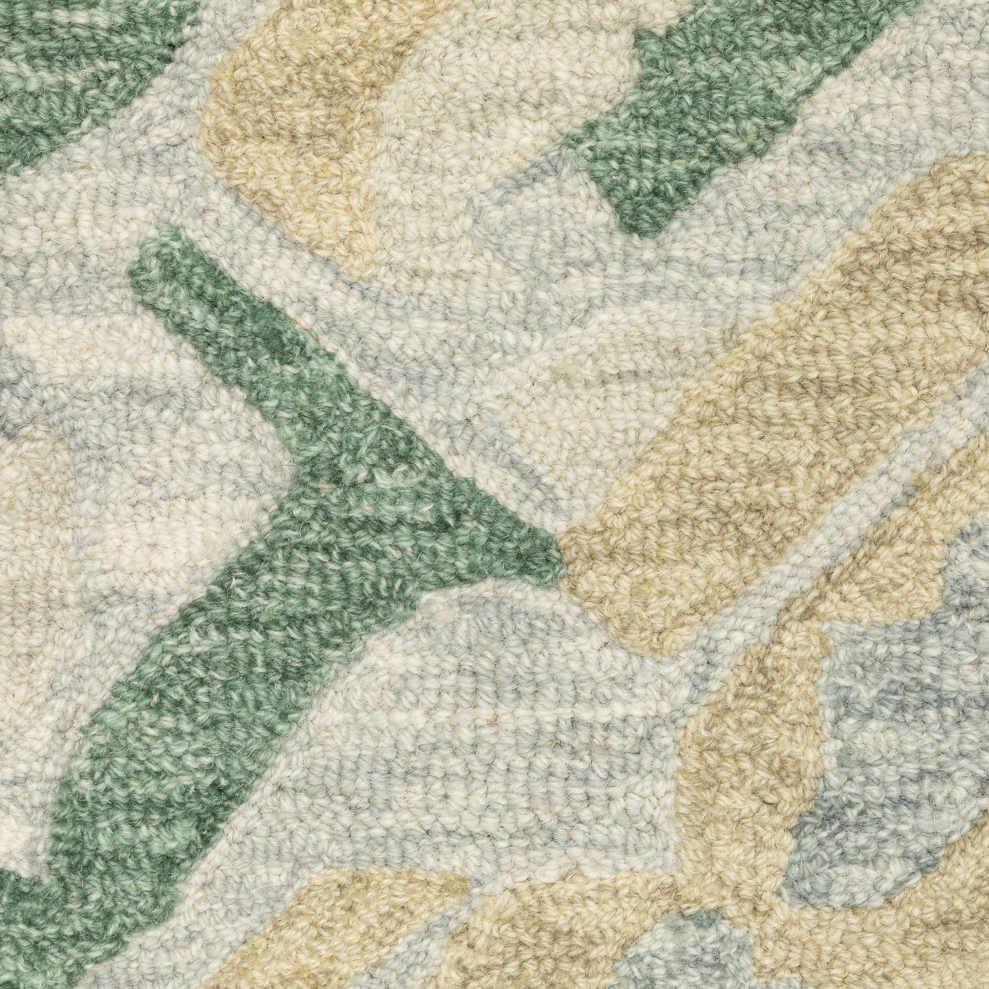 Kipton is a hand-tufted collection constructed of space dyed wool and features a dense, textural cut and loop pile. Designs recall the organic shifting and layering of natural elements over time and that idea is echoed in the softly saturated blue and green tones as well as warmer shades of copper and gold.