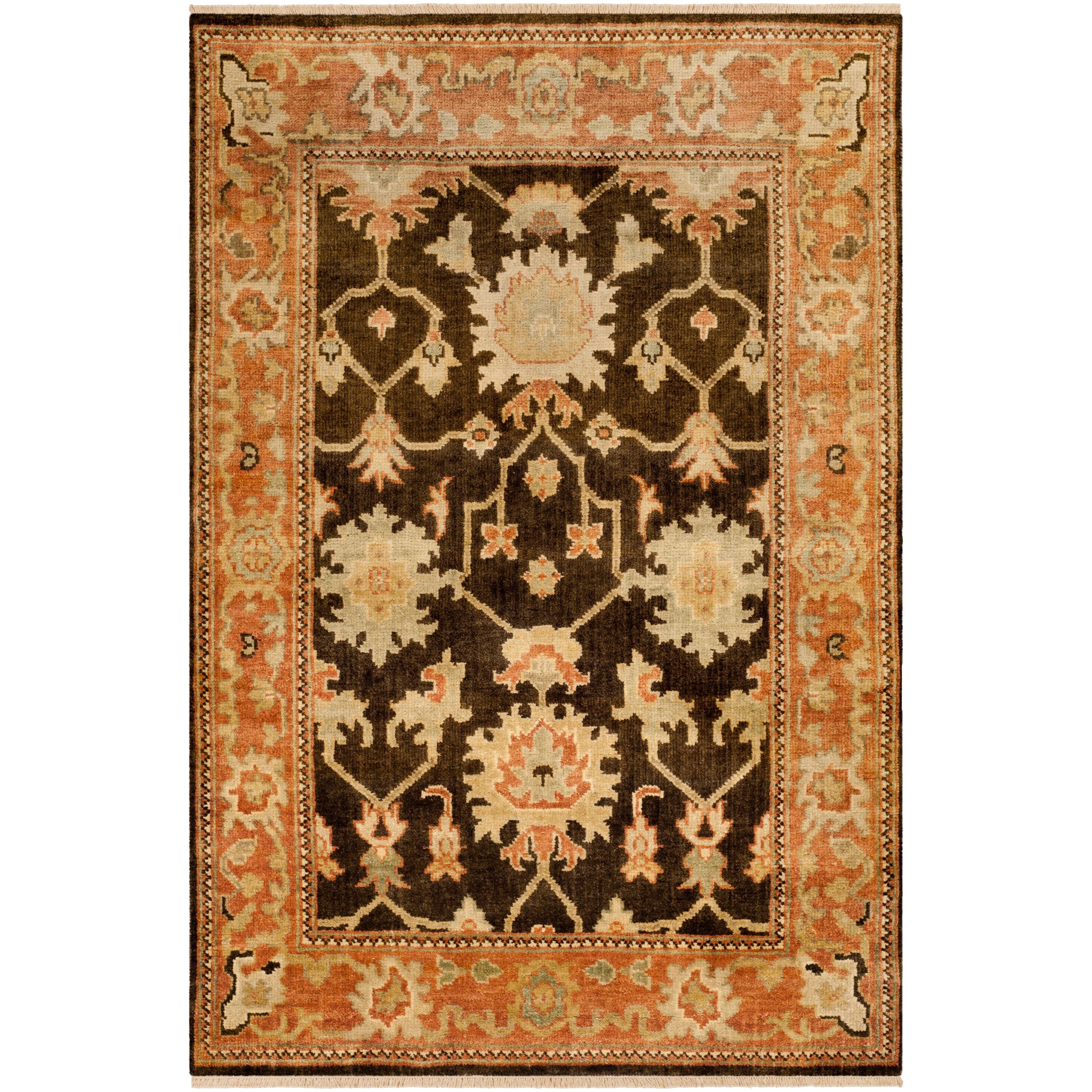stunning Oushak OSH115A Brown Rust rug from the Safavieh Oushak Collection. Hand-knotted with traditional patterns, these area rugs are a perfect blend of style and quality. Crafted from 100% premium wool, they offer a luxuriously soft feel and are a treat for your feet. The luster wash finishing adds a plush touch to the pile, enhancing the overall comfort and elegance of the rug. Designed to be a timeless favorite in your home decor, this Oushak rug promises beauty and durability that will last for years to come. Elevate your living space with this exquisite piece today!