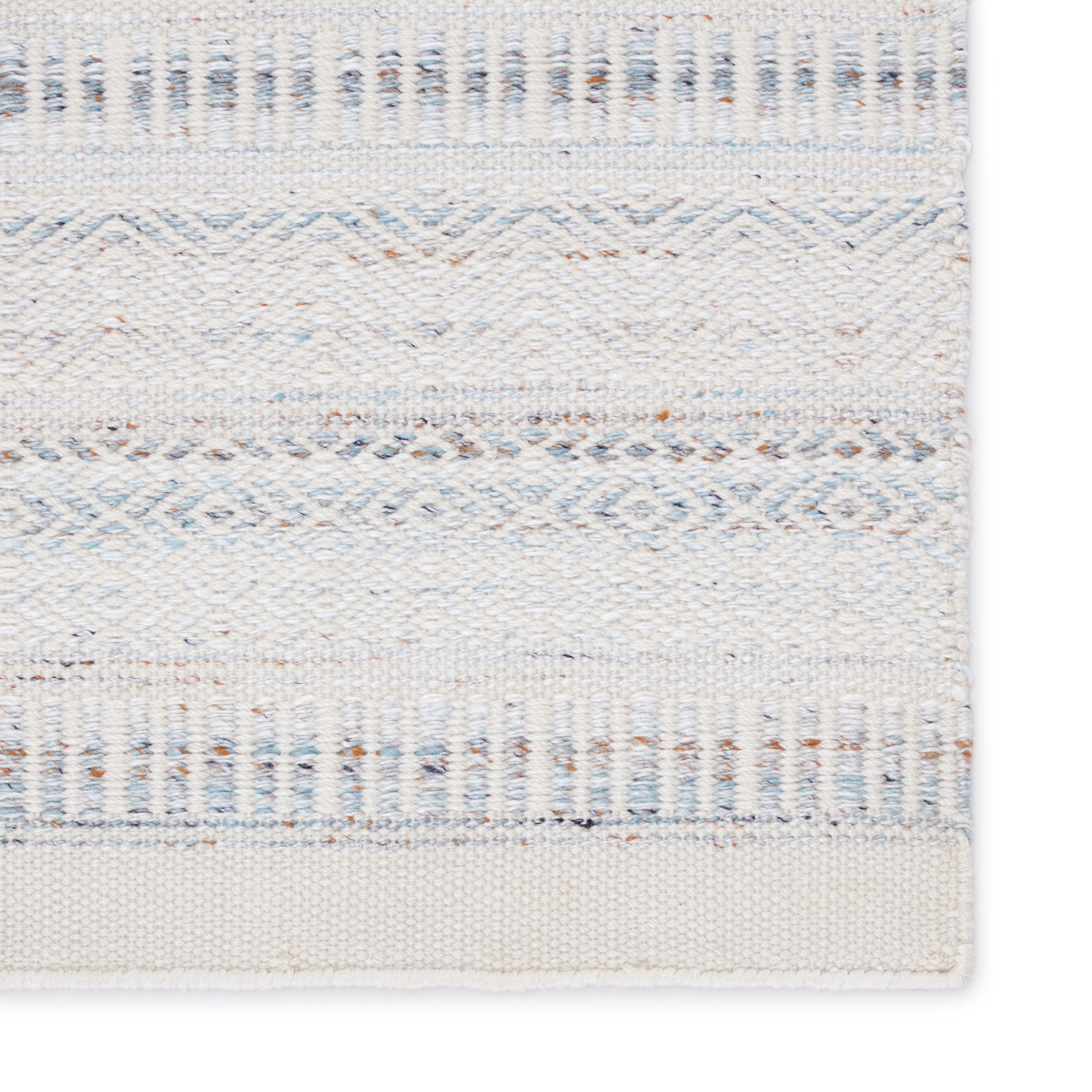Penrose PNR02 Parson, a handwoven rug that exudes a soft and versatile style. This beautiful area rug from the Penrose collection combines light blue and ivory tones with hints of rust and dark blue speckles for a neutral yet grounded aesthetic. Made from high-quality polyester yarn, this rug is not only durable but also textured, making it ideal for both indoor and outdoor use.