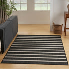 Elevate your outdoor space with the luxurious charm of the Positano POS03 Black Ivory outdoor rug. Crafted with a flatweave design, these rugs effortlessly blend sophistication for indoor areas like your living or dining room, while also providing durability for outdoor settings such as your porch, patio, or deck. The collection offers a wide range of options in versatile neutrals and vibrant colors, each showcasing unique variations thanks to the space-dyed and striated yarns used in their construction. Made from polypropylene, these rugs are easy to maintain – simply rinse with a hose and air dry for quick cleaning.