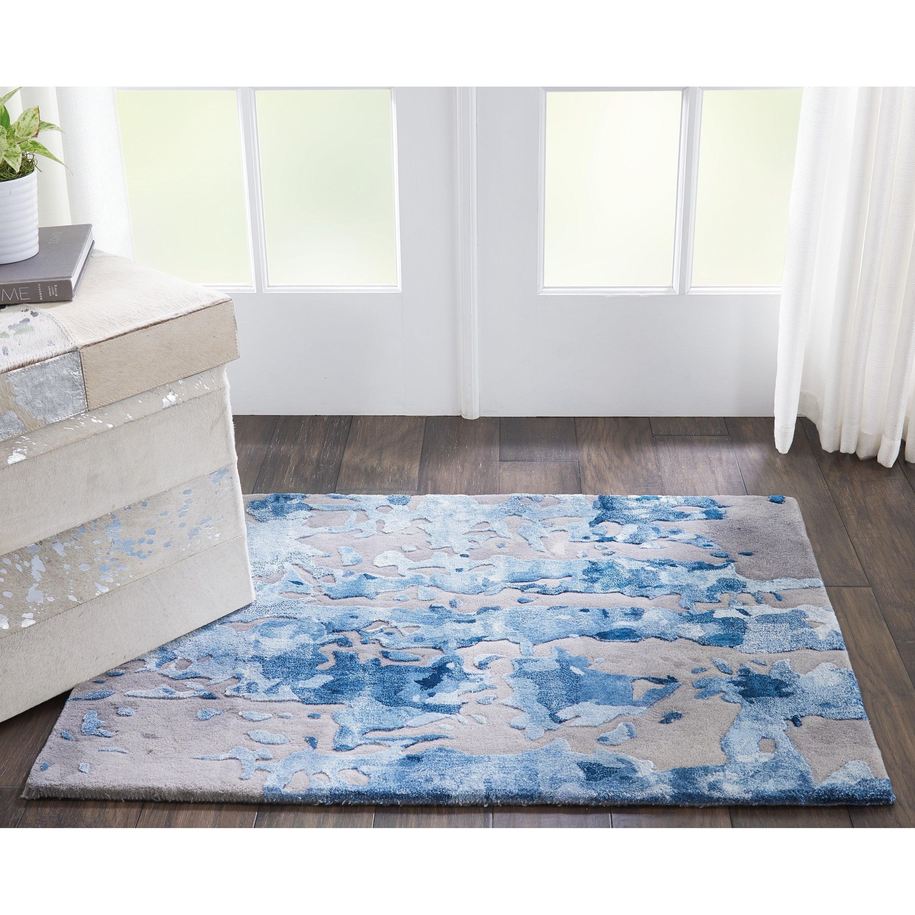 captivating Prismatic PRS10 Blue Grey rug from Nourison's exquisite collection. The fusion of charismatic colors and daring dimensional textures make it a standout piece for any modern home. Hand-tufted with precision using the finest New Zealand wool and Luxcelle™ silk-like fibers, these contemporary rugs offer a perfect balance of style and comfort.