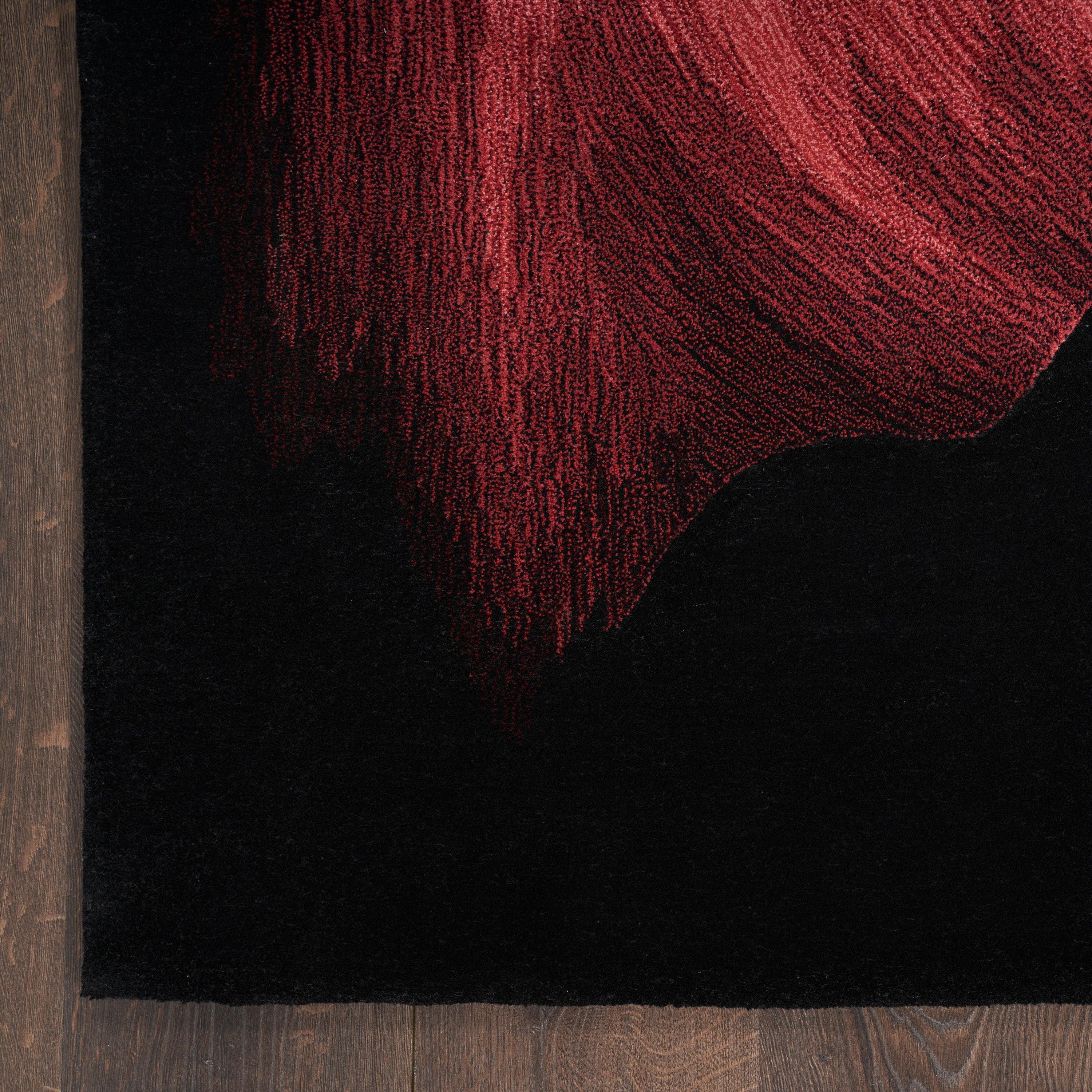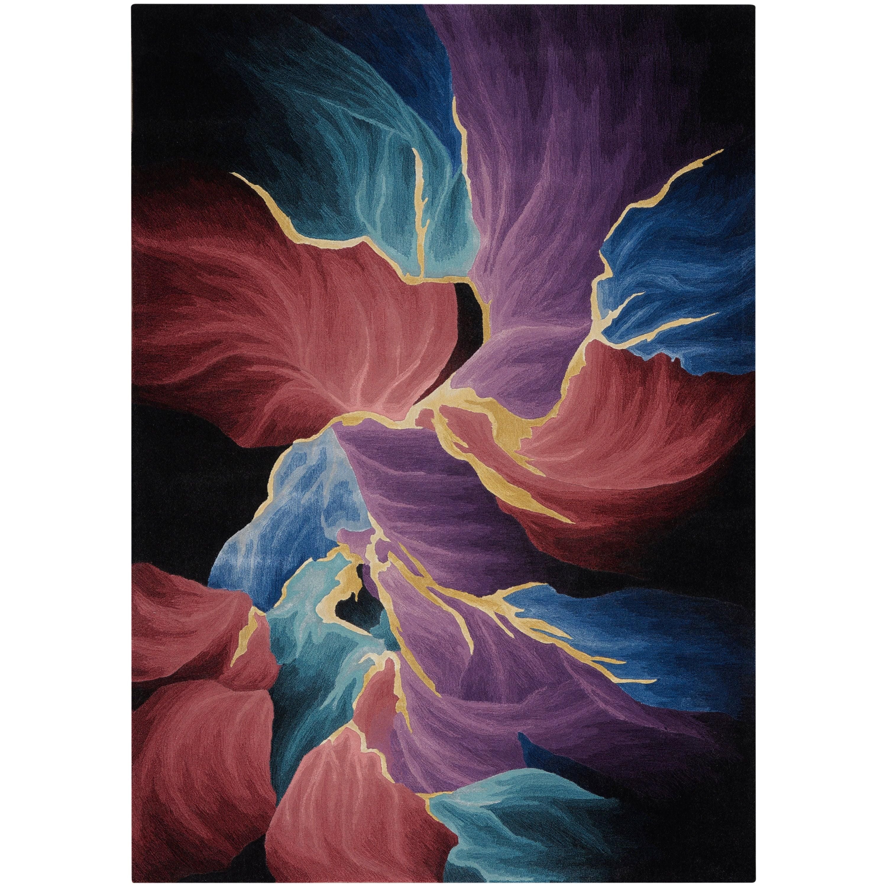 Prismatic PRS34 Black rug from Nourison's captivating collection. This modern piece is expertly hand-tufted using the finest New Zealand wool and Luxcelle™ silk-like fibers, creating a luxurious and dimensional texture that will elevate any room in your home.