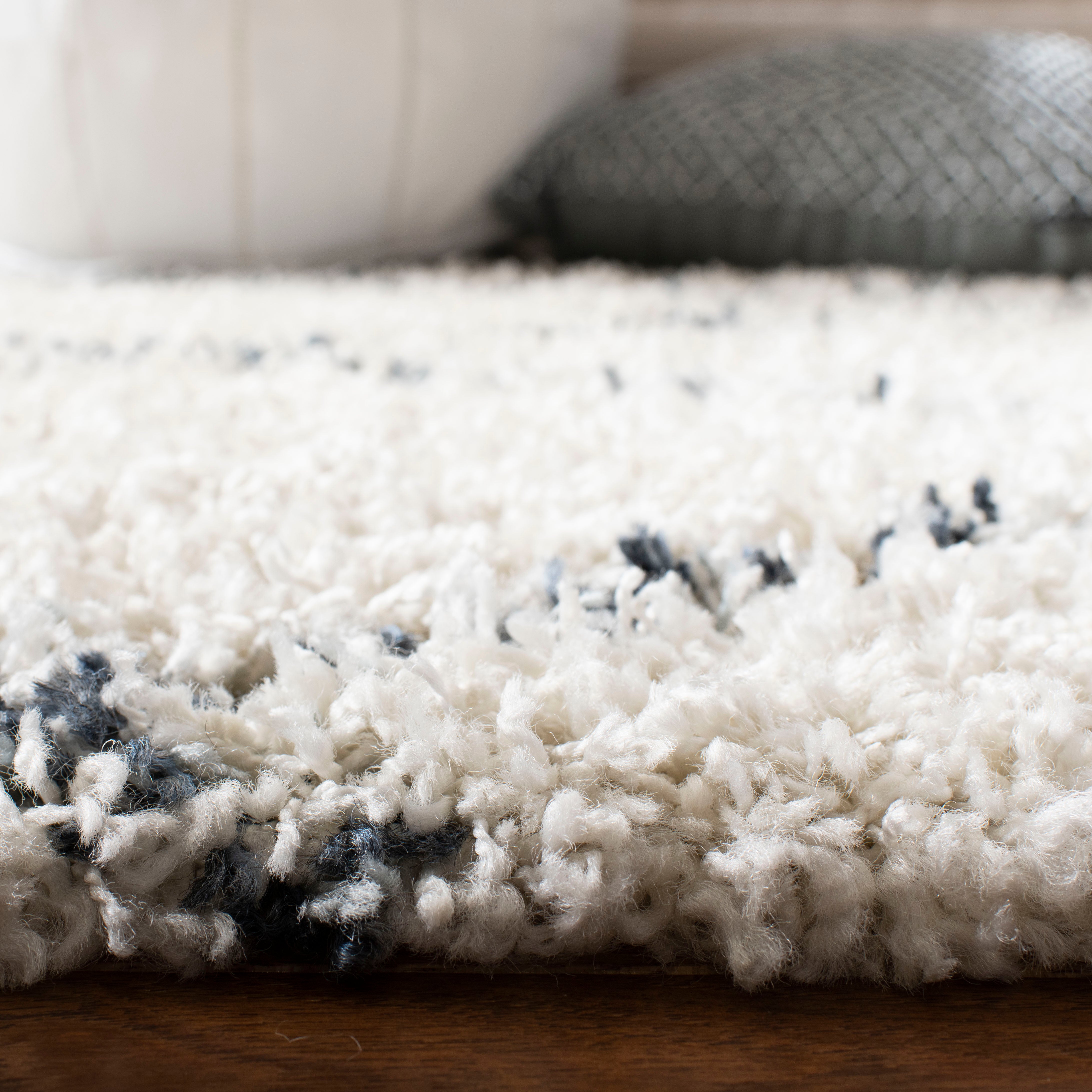 Pro Lux Shag 400 PLX433A Cream Blue rug by Safavieh, offering a luxurious and modern touch to your space. The inviting 2-inch pile height provides a plush and cozy feel, perfect for creating a comfortable atmosphere in your living room or home office. Crafted with enhanced polypropylene fibers, this rug is designed for lasting durability and easy maintenance.