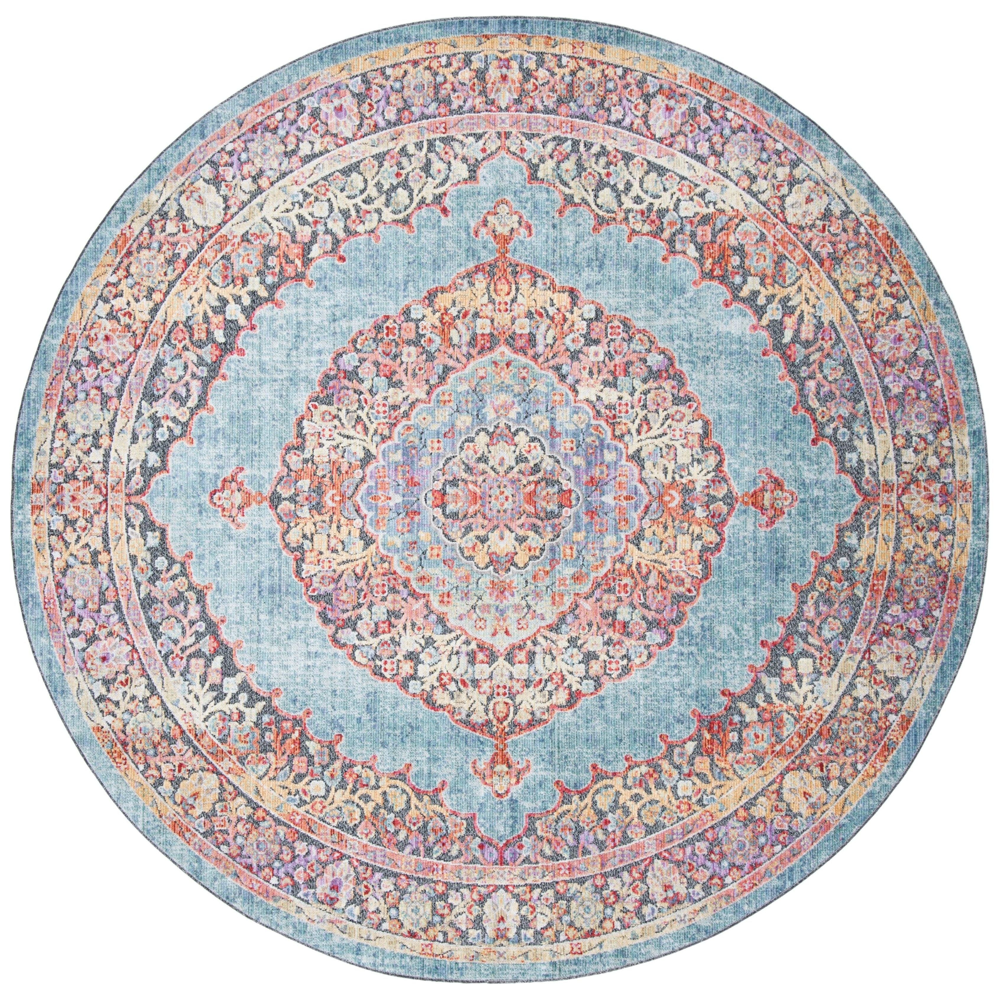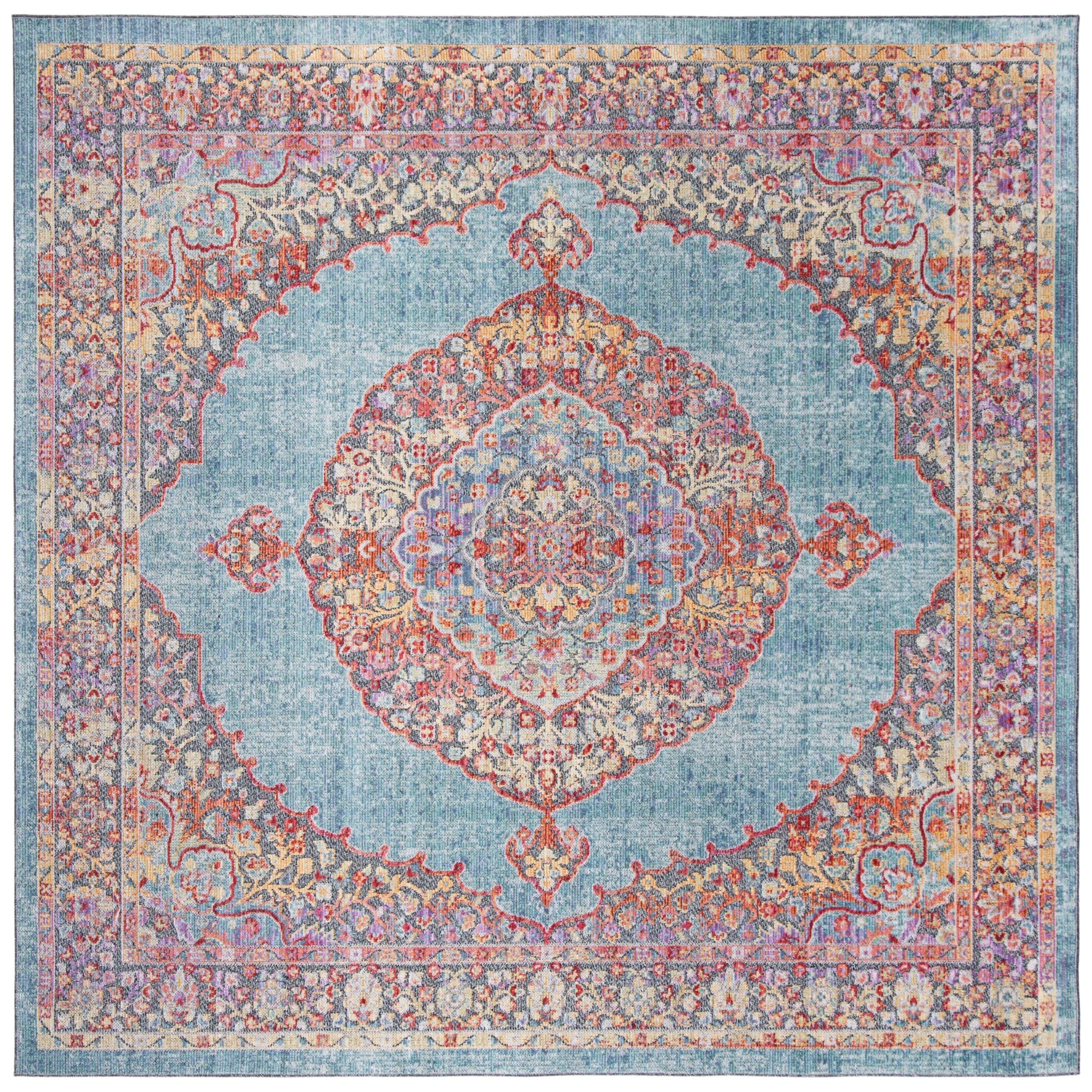 Provance PRV181J rug from SAFAVIEH's versatile Provance Collection. This rug is designed to effortlessly complement any accent color in your home, with its modern twist on classic Oriental motifs. Featuring a delightful mix of both subtle and bold shades, these rugs are power-loomed using high-quality polyester fibers that enhance their shine and beauty, creating an elegant look for your space. The approximate thickness of the rug is 0.25 inches, adding a plush feel underfoot.