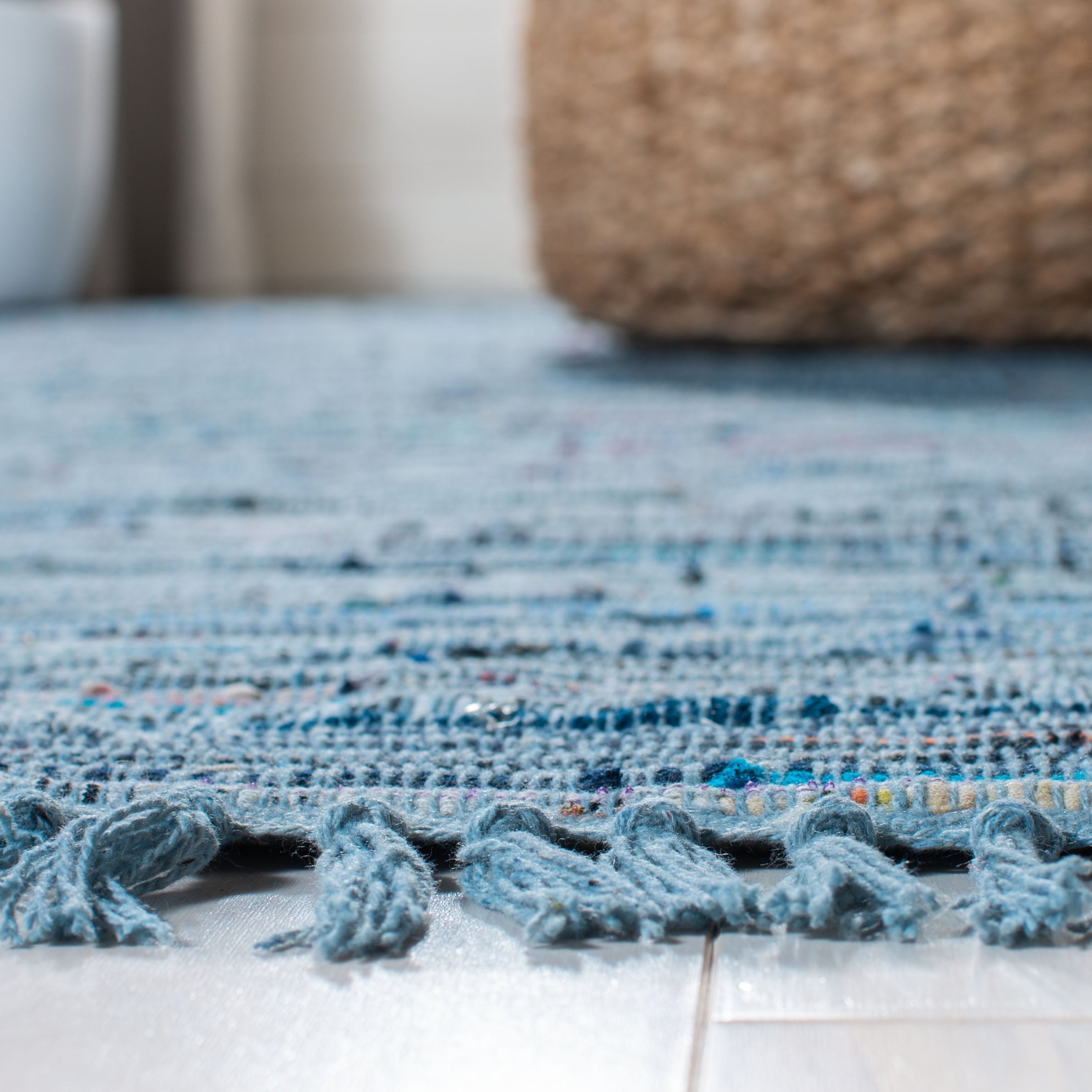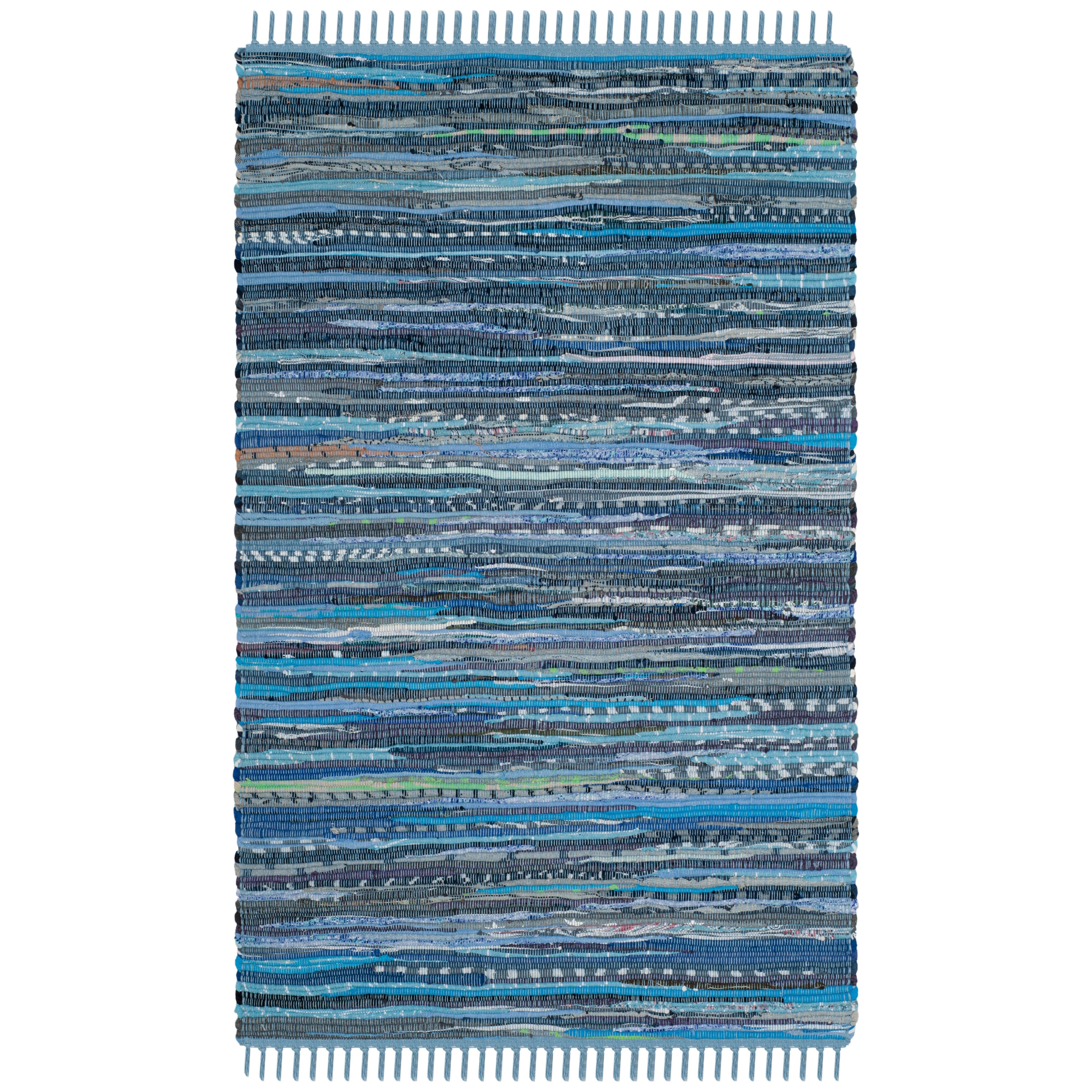 Rag Rug RAR127B Blue Multi, a modern twist on a classic American craft. This chic cotton pile rug collection adds a pop of trendy colors to a timeless design, making it ideal for casual spaces. Handwoven by skilled village artisans in India, these vibrant rag rugs bring texture and character to any room.