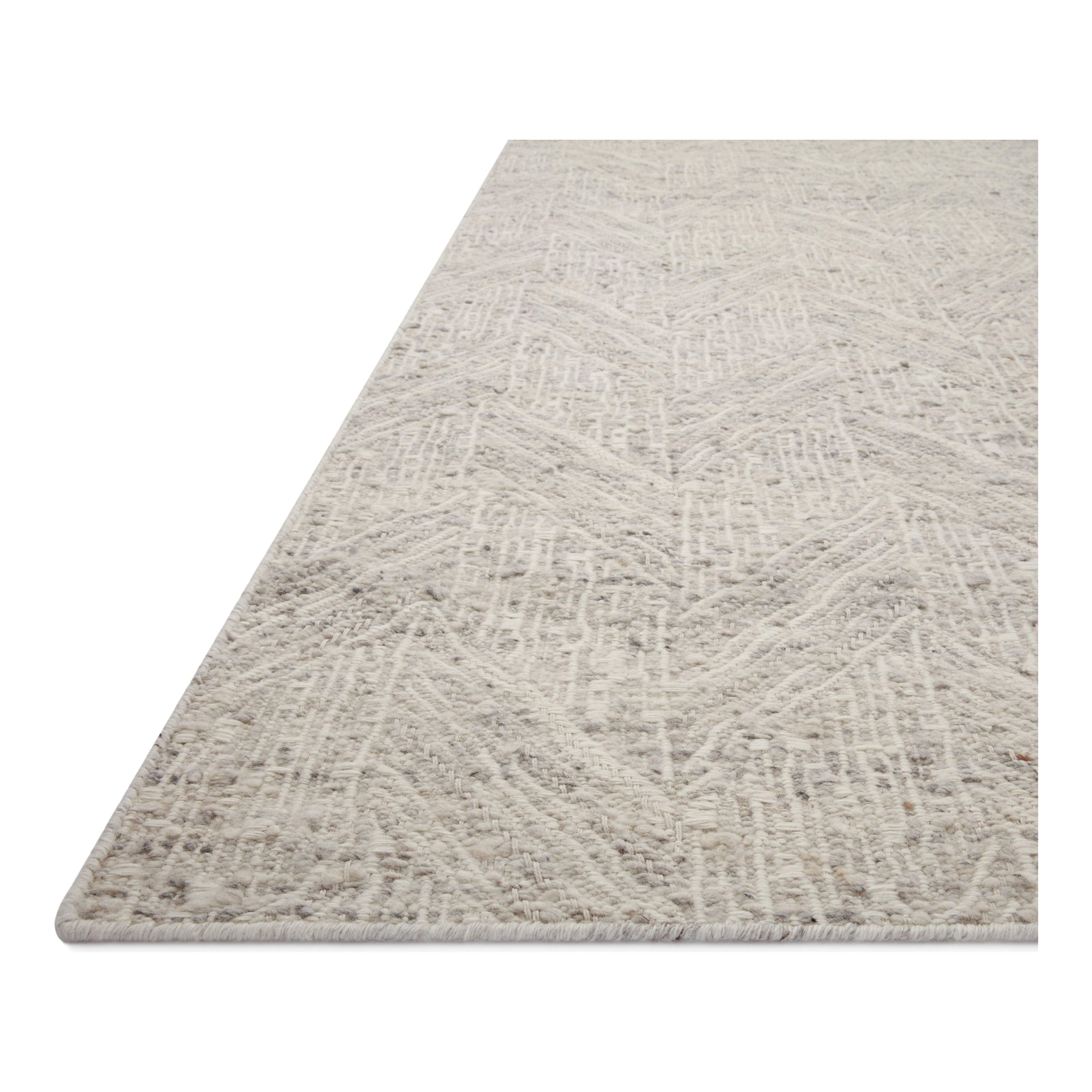 Raven Rav 01 Silver Ivory, a stunning addition to your home decor. This intricately handwoven rug features delicate, fine yarns that bring to life a layered and dimensional geometric design. Despite its thick and sturdy construction, the colors and patterns exude a casual lightness that effortlessly complements various living spaces, from bustling family rooms to tranquil bedrooms.