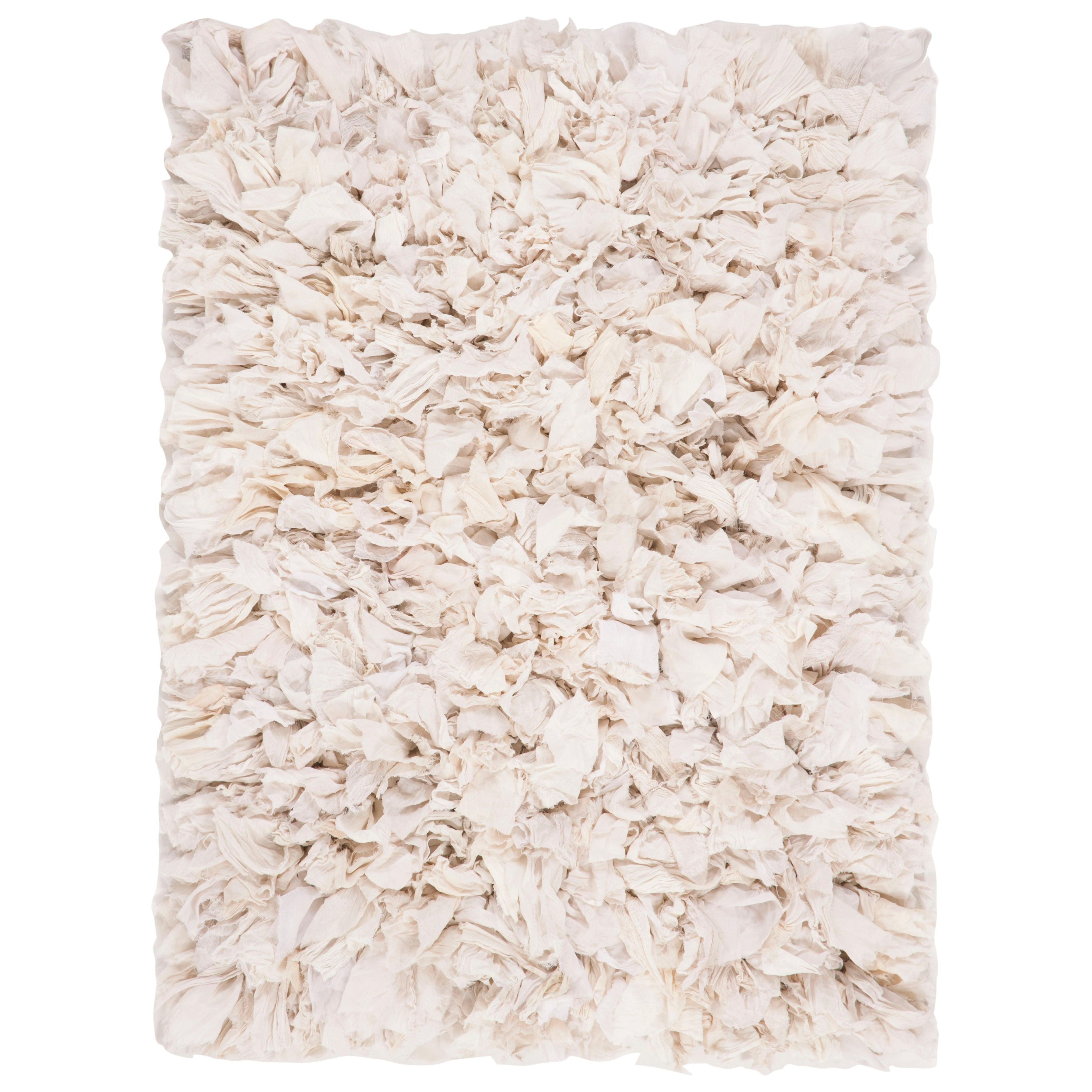 Rio Shag SG951W rug from SAFAVIEH, a stunning addition to any room with its hand-crafted textile arts aesthetic. Hand-tufted using synthetic fabric cutouts, this rug features a luxurious shag surface that combines taffeta and sheer textures for a truly unique look reminiscent of gift wrap ribbons and ballet tutus. Available in a variety of shapes including rectangles, runners, squares, and rounds, the Rio rug allows you to make a bold statement in your space. With an approximate thickness of 3.5 inches, it adds both comfort and style to your home decor.