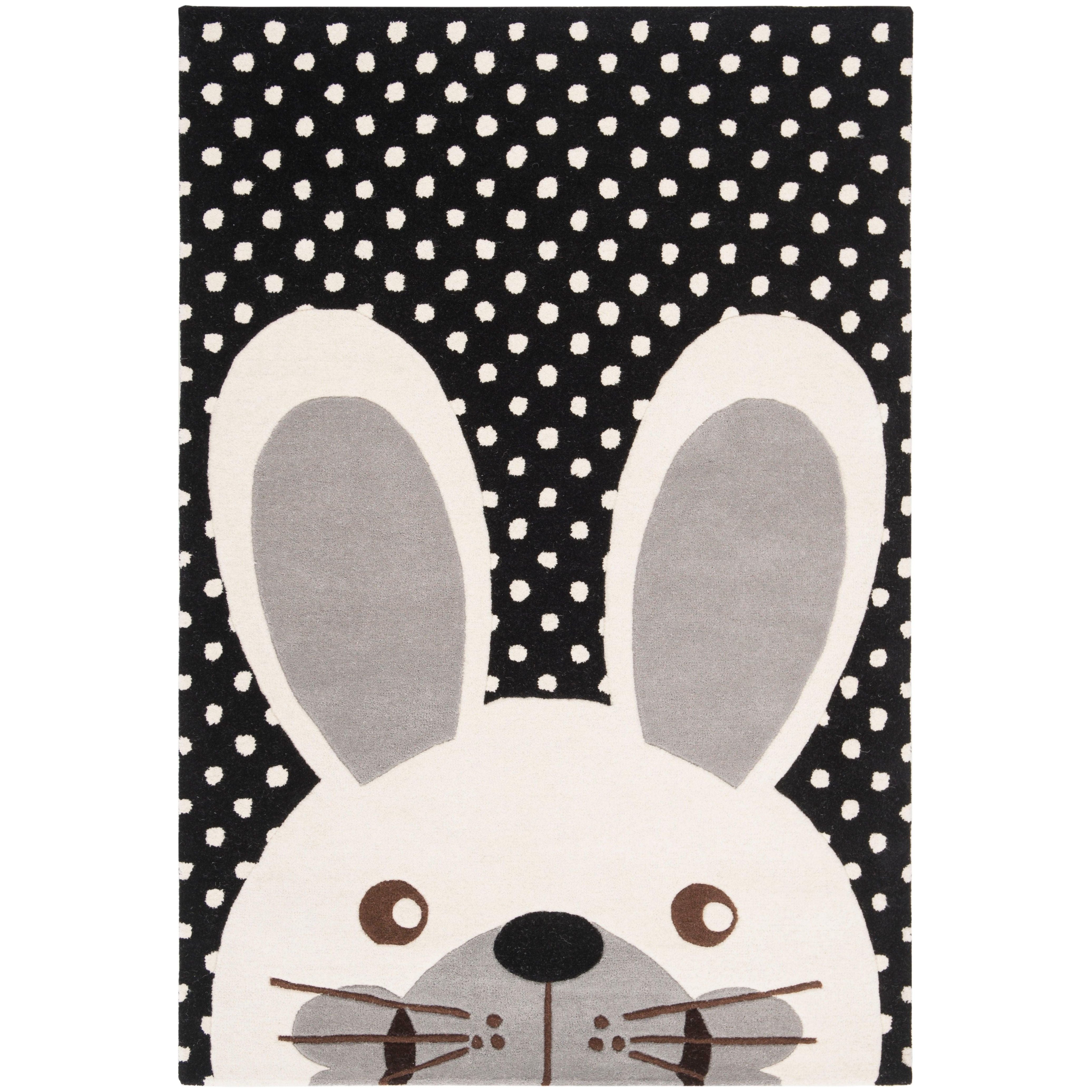 Safavieh Kids SFK922Z Black Ivory rug, a perfect addition to any child's play area or bedroom. Hand-tufted with premium New Zealand wool, this rug offers a luxurious and cozy feel underfoot. The elegant black and ivory design adds a touch of sophistication while still maintaining a playful vibe that kids will love.