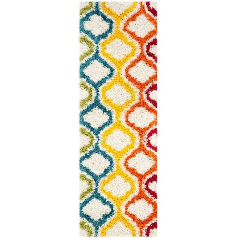 Safavieh Kids Shag SGK561A, a vibrant and charming addition to any child's room. This collection boasts a fun and playful aesthetic that will brighten up the space. Crafted with a thick pile for extra comfort and durability, these soft carpets are made of high-quality polypropylene yarn. The plush texture is gentle underfoot, perfect for your little one to play and relax on.