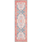 stunning Saffron SFN508R Fuchsia Blue area rug, a masterpiece of exquisite design and vibrant colors that will ignite your creativity. This hand-loomed flat weave rug is crafted with breezy cotton fibers, creating a sense of relaxation and comfort in any space. Perfect for various decor styles, including coastal, contemporary, Southwestern, bohemian, and casual settings.