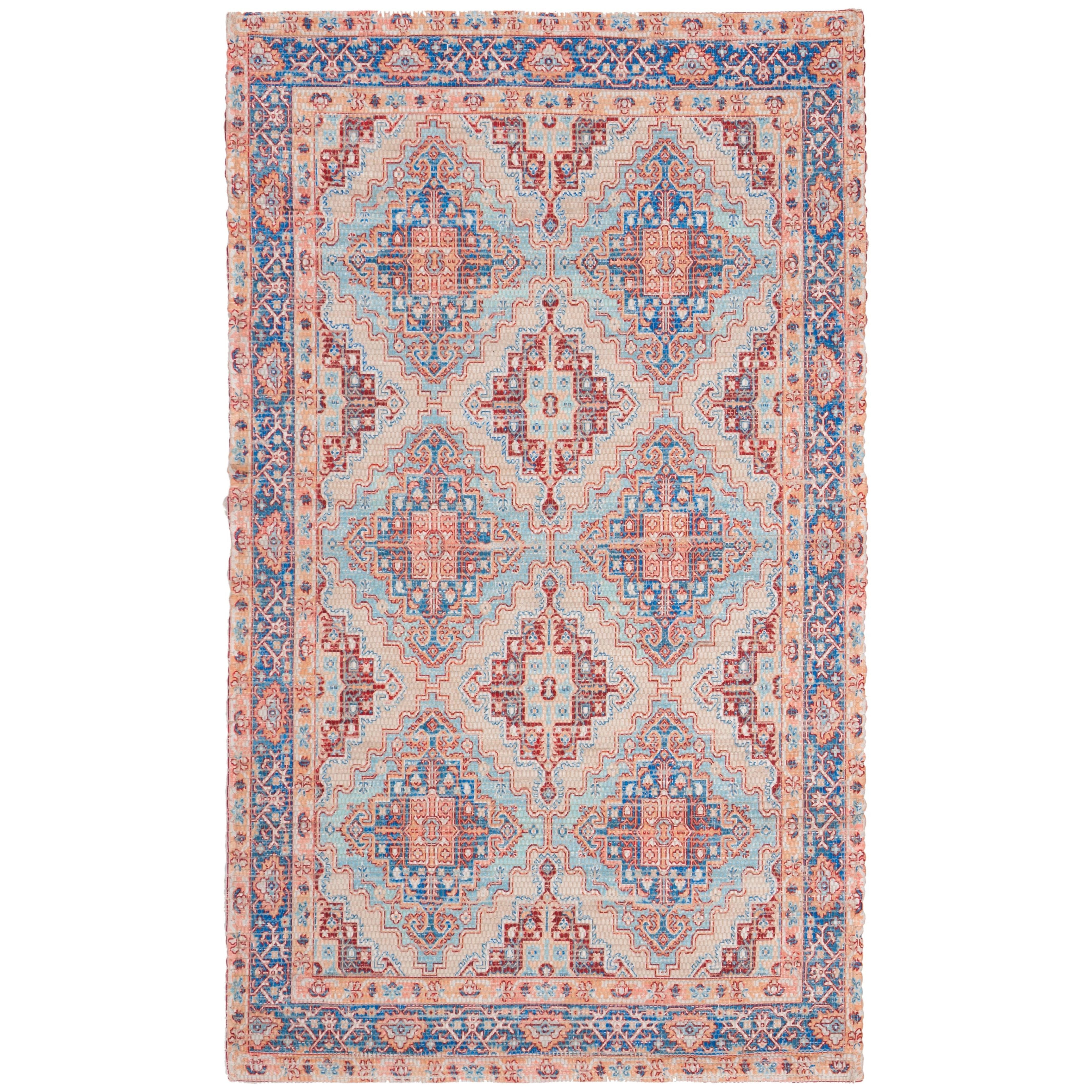 stunning Saffron SFN510M Blue Rust area rug, a perfect blend of exquisite designs and vibrant colors that will ignite your creativity. This hand-loomed flat weave rug is crafted with breezy cotton fibers, creating a relaxing and inviting atmosphere in any room it graces. The Saffron collection is versatile, seamlessly fitting into coastal, contemporary, Southwestern, bohemian, or casual decor themes.