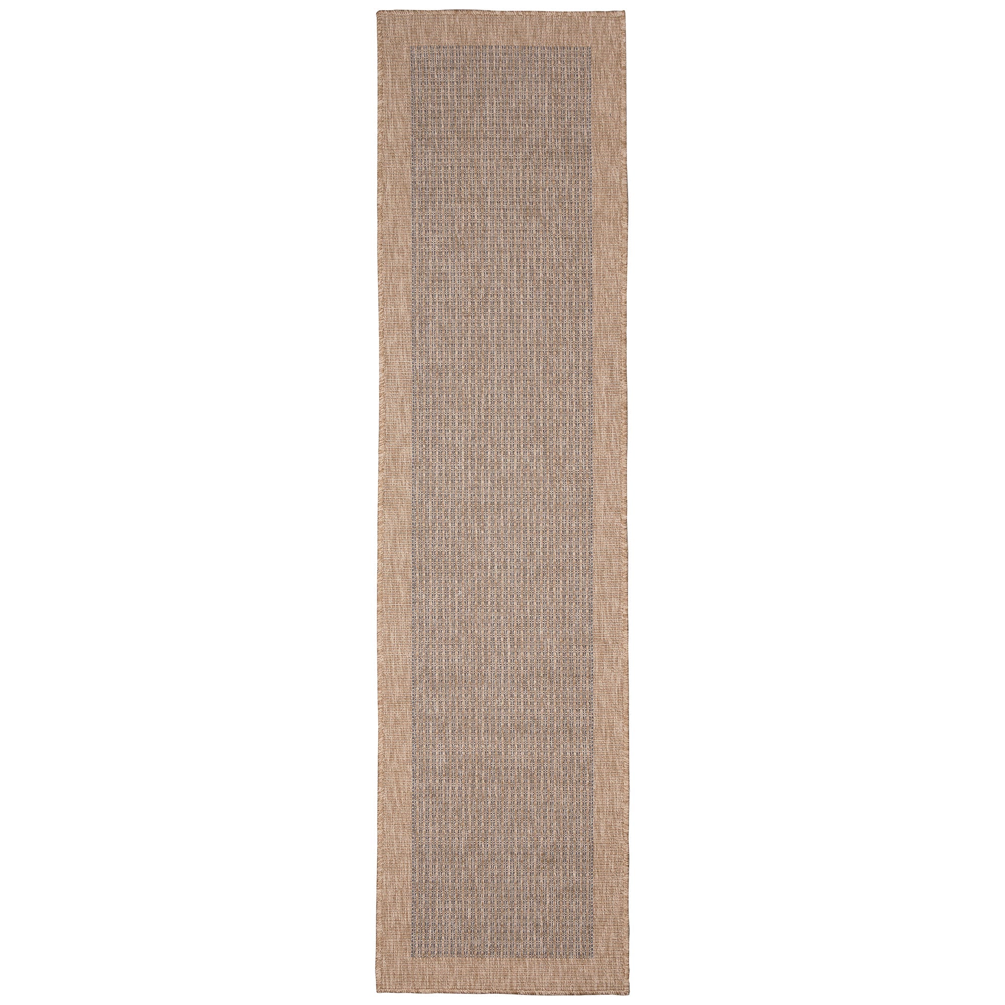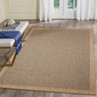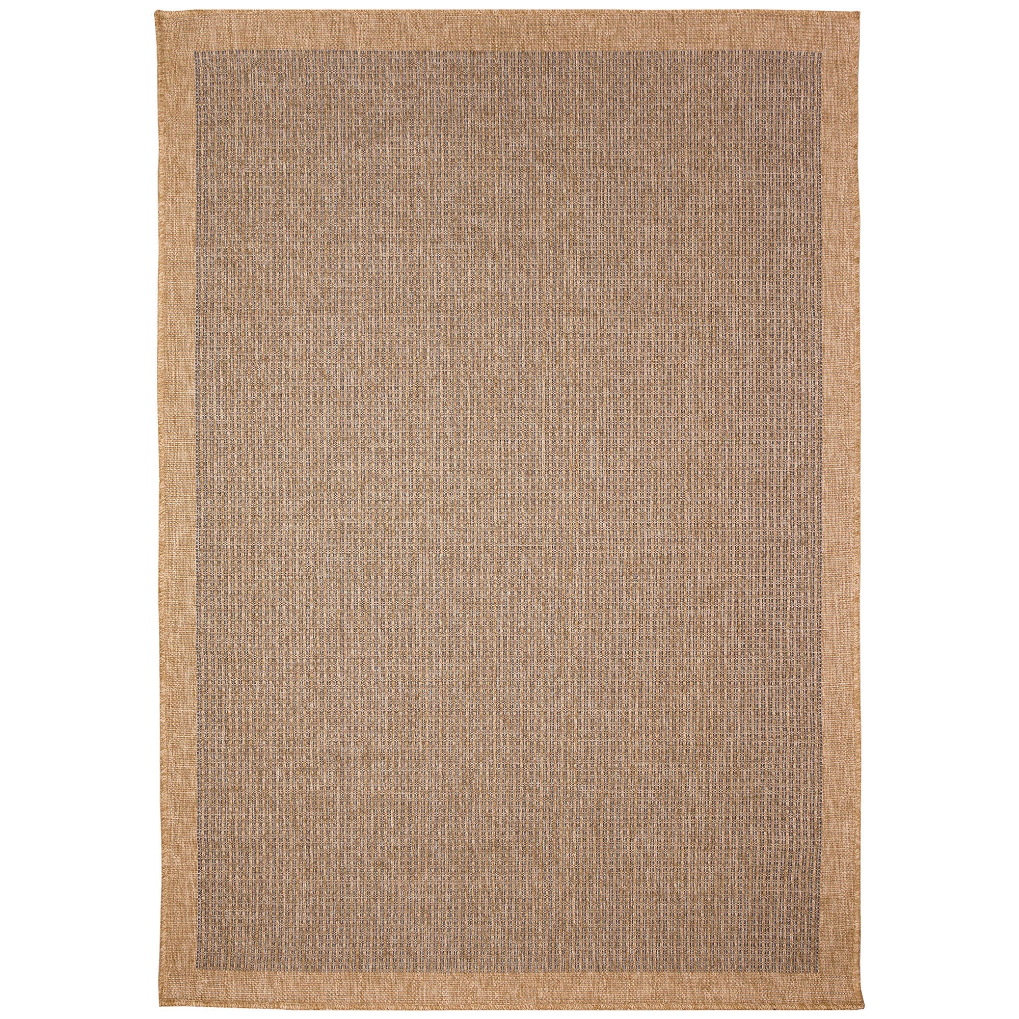 Sahara Texture Border Navy area rug, a stunning addition to both indoor and outdoor spaces. This machine-made rug boasts a transitional solid textured weave with a tweed center in navy and neutral tones, creating a chic border pattern. Crafted in Turkey from 91% Polypropylene/9% Polyester, the Sahara Collection is Power Loomed to deliver subtle, organic patterns through its dense weave. The material is flatwoven, fade-resistant, UV stabilized, and durable - perfect for high-traffic areas like your patio, deck, kitchen, or living room.