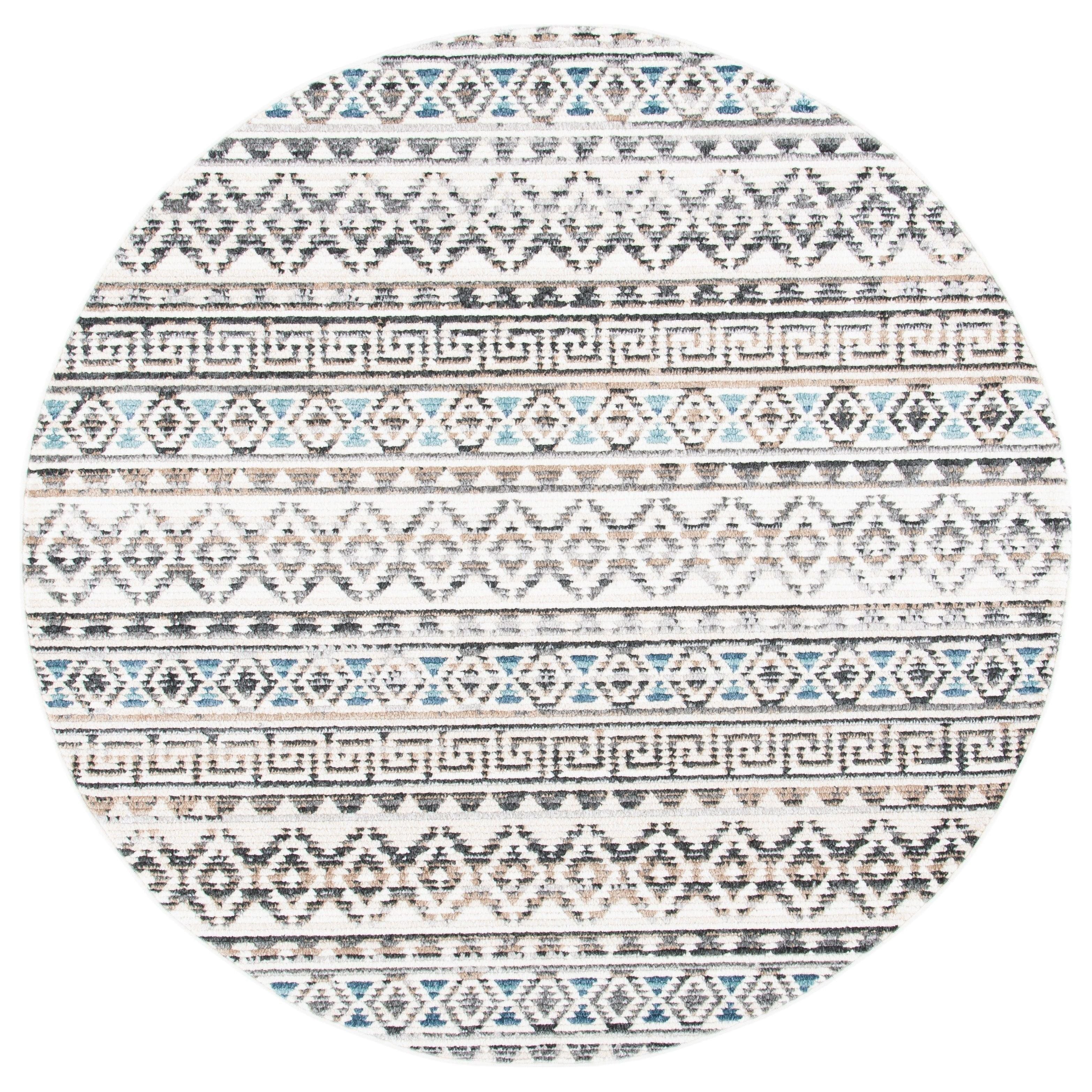 Elevate the style of your home with the Sedona SED883A area rug from the SAFAVIEH collection. Crafted to bring warmth and Southwestern charm to any room, these rugs are both durable and easy to maintain, making them perfect for high-traffic areas. With fringe detailing on select shapes, these rugs offer a modern touch with a relaxed desert-boho vibe. The rug boasts a thickness of approximately 0.32 inches for added comfort and texture.